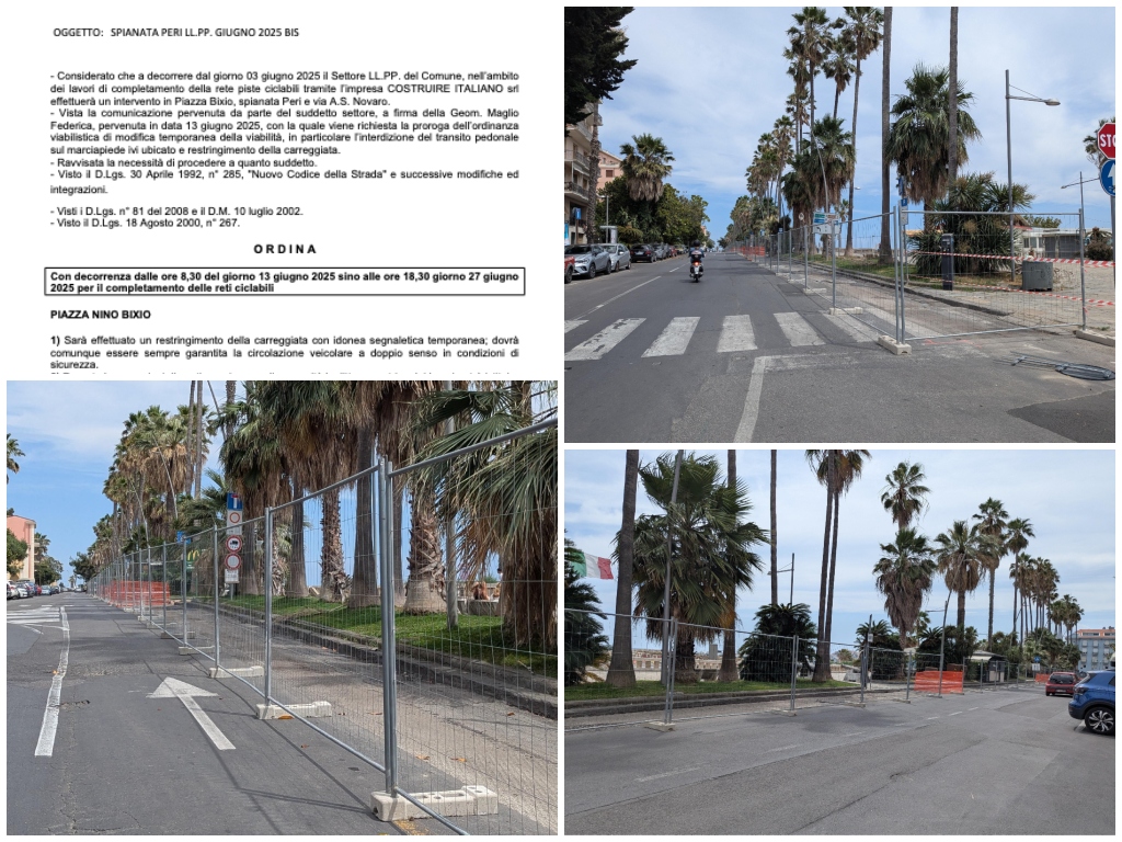 Con decorrenza dalle ore 8,30 del giorno 13 giugno 2025 sino alle ore 18,30 giorno 27 giugno 2025 per il completamento delle reti ciclabili