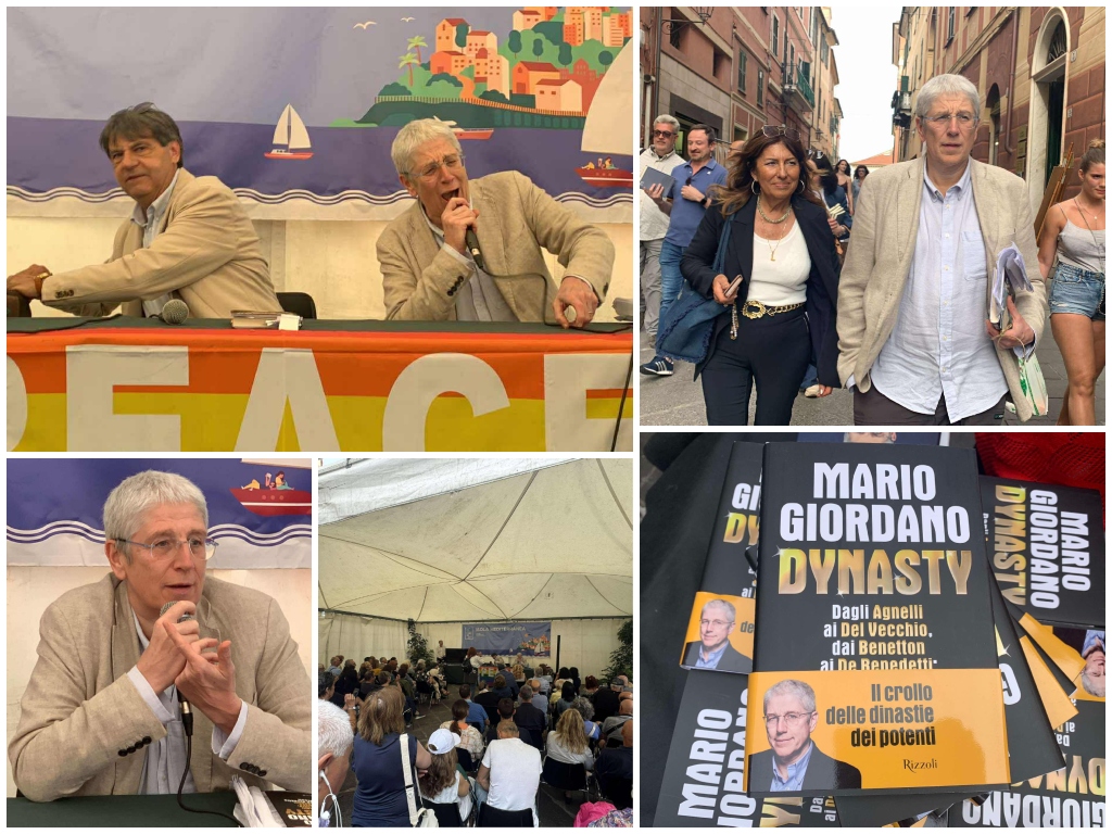 Questo pomeriggio, nella cornice dell’Isola Mediterranea di Piazza Fratelli Serra, ha presentato il suo ultimo lavoro, “Dinasty“, che, spiega Giordano, è “un racconto che sembra una serie televisiva, perché raccontare la realtà a volte è affascinante, anche divertente, ma fa anche un po’ arrabbiare, proprio esattamente come quando uno guarda serie televisive. Sono serie delle nostre famiglie, quelli che sono le élite economiche, quelli che dovevano guidare il paese nel futuro e invece ahimè, il paese è in ginocchio, le fabbriche chiudono ma loro nuotano nei soldi dando spettacoli indecenti. Il paese sul viale del tramonto, loro sul caviale del tramonto. Questo fa arrabbiare ma raccontarle fa anche divertire”.