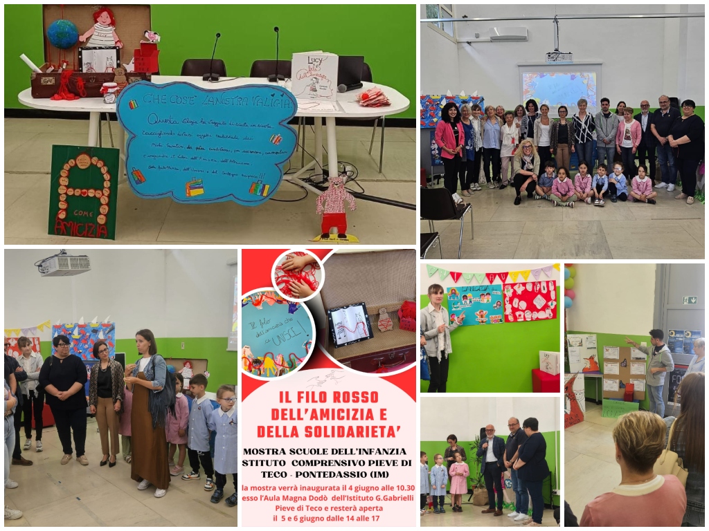 Ogni plesso ha programmato in modo fattivo: Chiusavecchia, Chiusanico, Borgomaro, Pornassio e, ovviamente, Pontedassio e ovviamente Pieve di Teco. A giudicare da quanto visto in queste settimane, la fantasia e la creatività si sono imposte. Il tema conduttore è il “filo rosso”. Le fil rouge. Un concetto europeo che ha legato bambini e idee nel “fare tutti insieme”. Il filo rosso che unisce, tutti, proprio nel momento e in spazi in cui l’Italia sta cambiando, diventa inclusiva, multietnica e partecipativa. Ritagli, piccole installazioni, creazioni manuali. Il tutto seguendo il tema del filo che unisce, che crea comunicazione.