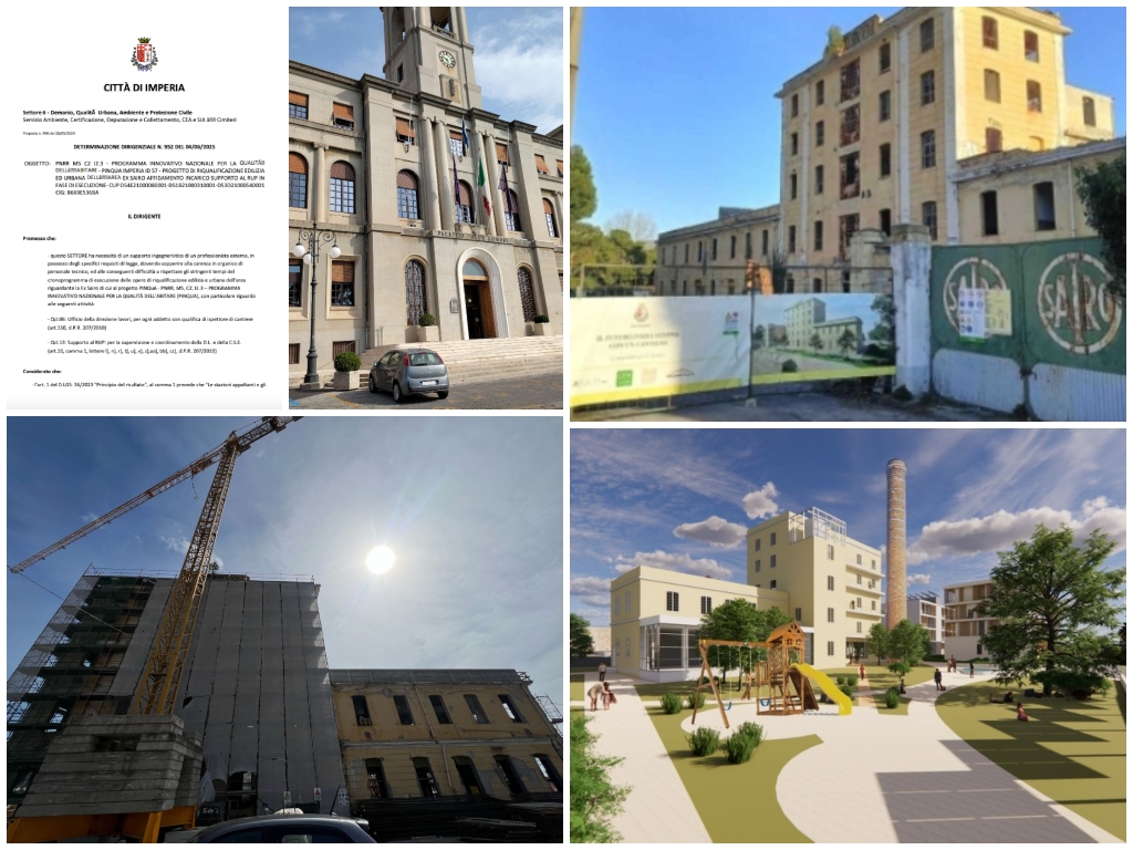 Il Comune di Imperia accelera sui lavori dell’ex Sairo per non perdere i 18 milioni di euro del Piano nazionale di ripresa e resilienza (PNRR). Con una determinazione dirigenziale firmata il 4 giugno, palazzo civico ha affidato all’ingegnere Paolo Rovere un incarico da 62.400 euro per supportare il responsabile unico del procedimento.