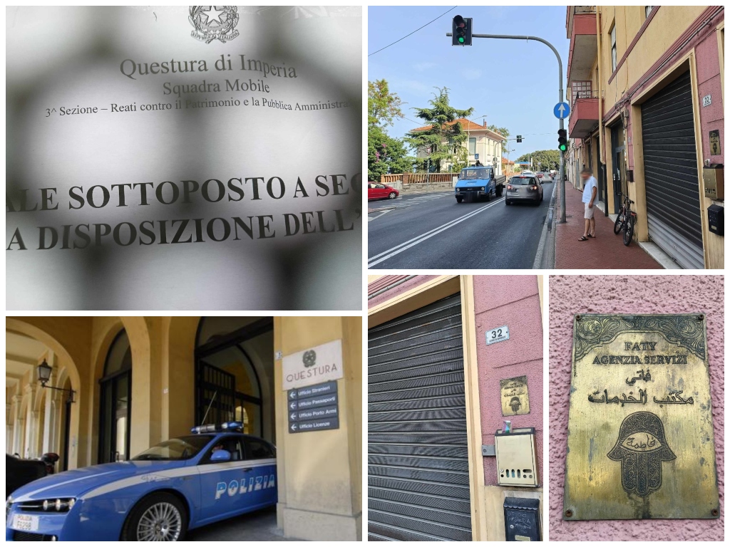 Nell’ambito dell’inchiesta della Procura e della Squadra mobile di Imperia, che ha portato all’arresto del sostituto commissario di polizia Luigi Mingherlino e della titolare dell’agenzia Europa Italian Real Estate di corso Garibaldi a Sanremo, Yelena Vtulkina, sono scattati anche i sequestri della stessa agenzia sanremese e dell’agenzia di servizi Faty di corso Garibaldi a Imperia.