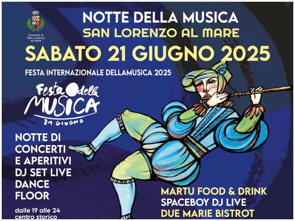 In occasione della “Festa Internazionale della Musica“, sabato 21 giugno a San Lorenzo al Mare, si aprirà la stagione delle “Notti della musica” estive.