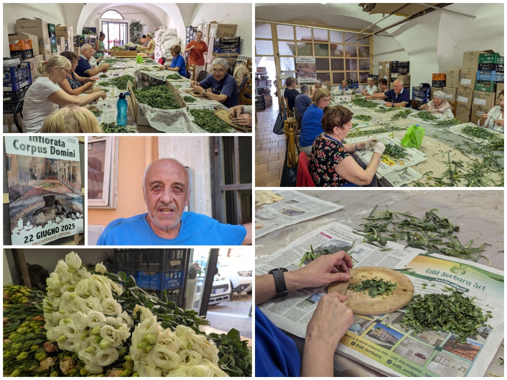 La tradizionale manifestazione religiosa, molto sentita dalla comunità, si prepara con il contributo esclusivo di volontari che in questi ultimi giorni stanno colorando segatura, recuperando gambi di garofani e qualsiasi materiale utile per creare i tappeti floreali.
