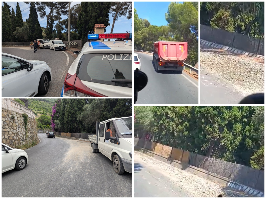 Camion di terra perde parte del carico su Capo Berta. È successo nel pomeriggio di oggi in un tratto in salita lungo il versante di Imperia. I detriti, sassolini e sabbia hanno invaso parte della carreggiata, rendendo pericolosa la circolazione stradale.