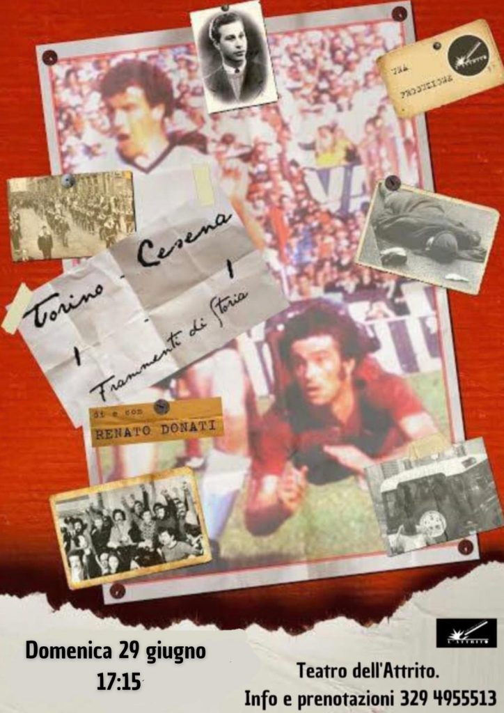 Domenica 29 giugno alle ore 17.15 al Teatro dell’Attrito appuntamento con “Torino-Cesena 1-1….frammenti di Storia“, di e con Renato Donati.