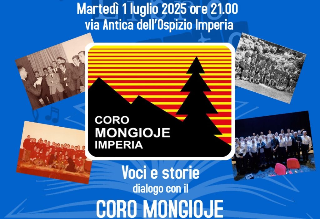 Martedì 1 luglio la rassegna sarà inaugurata dall’eccellenza Imperiese scelta per l’edizione 2025, il Coro Mongioje. Classe 1963, fondato da Emilio Lepre e oggi diretto da Ezio Vergoli, il Coro Mongioje è il gruppo corale più longevo della provincia di Imperia. Reduce da diversi impegni recenti in Sardegna, ma anche al Teatro Cavour per la Buona Novella deandreiana curata da David Riondino, il coro sarà protagonista di una serata, condotta da Marco Oreggia, in cui sarà celebrata la sua grande storia e saranno svelate e raccontate struttura, caratteristiche e peculiarità, il tutto tra interventi e sorprese.