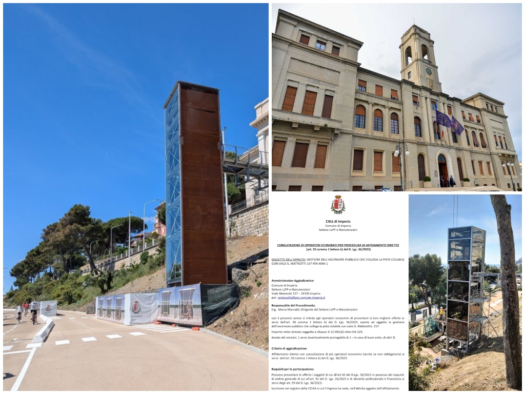 Il Comune di Imperia ha avviato una manifestazione di interesse per la gestione dell’ascensore panoramico che collegherà viale Matteotti alla pista ciclabile.