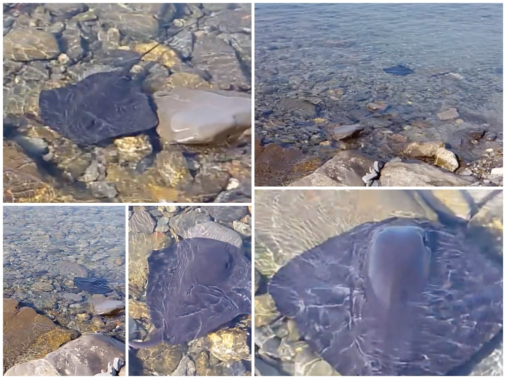 Una “Trigone viola”, meglio conosciuta come Razza viola, è stata avvistata questa mattina nelle acque di Imperia. Il raro incontro con questo pesce è stato filmato giovedì 26 giugno alla foce di Porto Maurizio, dove l’animale nuotava tranquillamente vicino alla riva.
