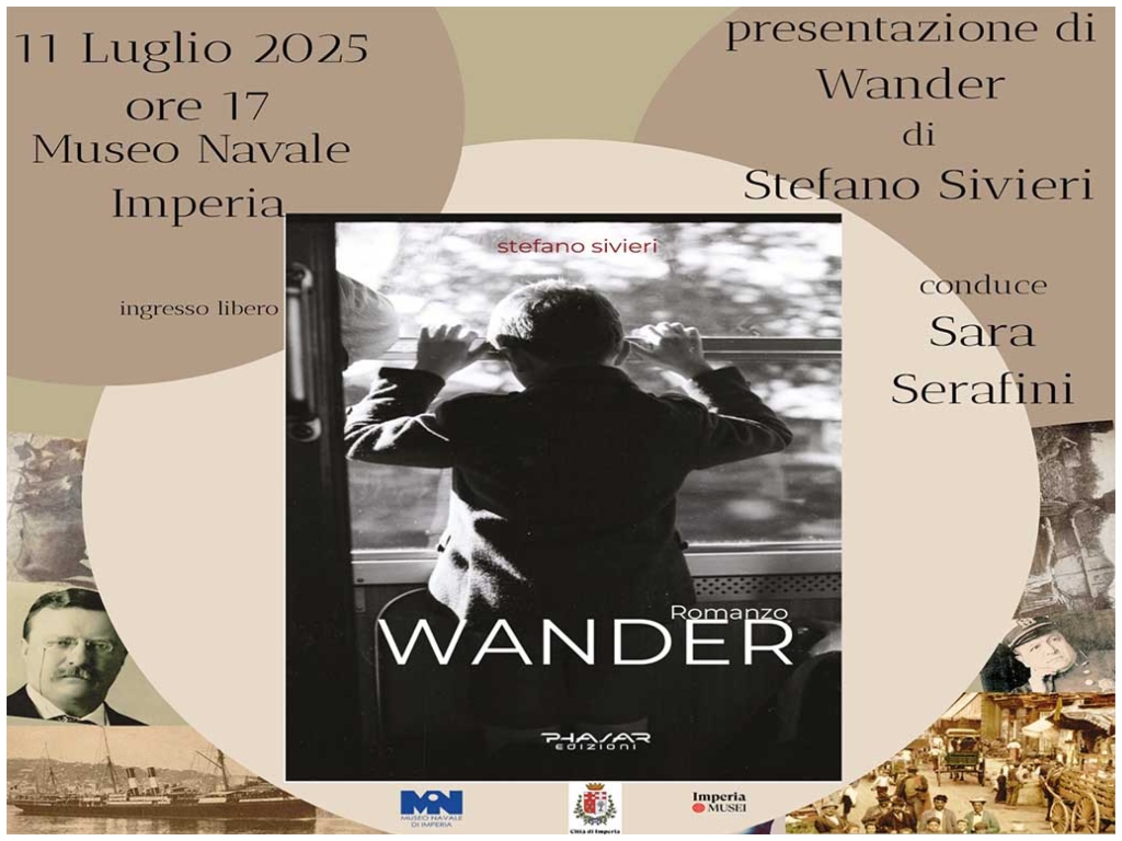 Venerdì 11 luglio alle 17:00, in un incontro con l’autore, presso l’auditorium del Museo Navale di Imperia, verrà presentato “WANDER”, l’ultimo Romanzo di Stefano Sivieri.