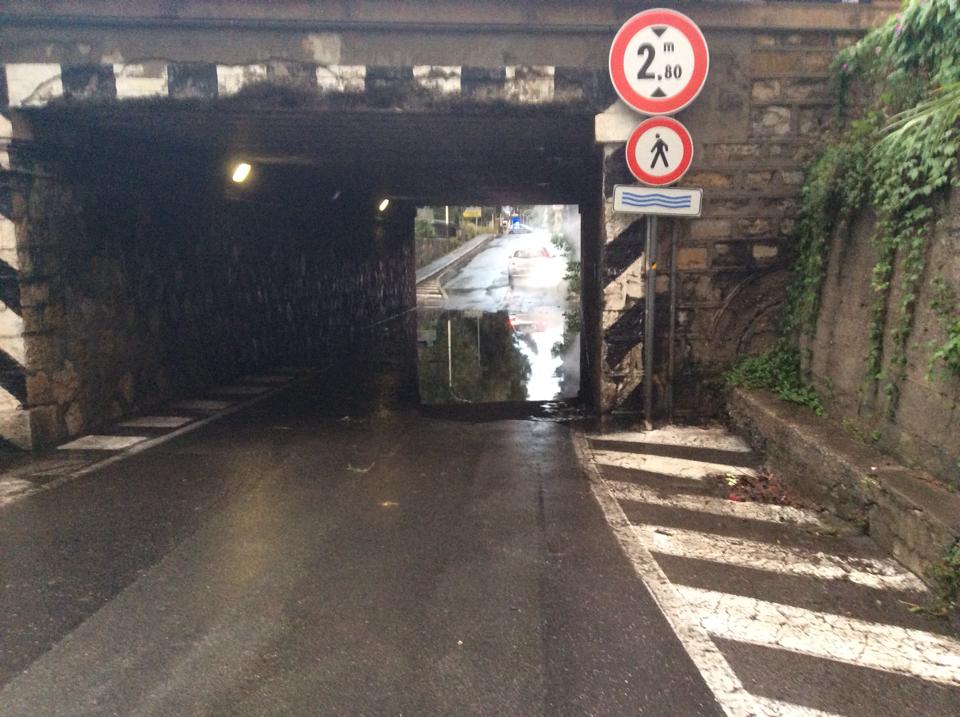 Imperia. Il maltempo che sta colpendo duramente la provincia di Imperia, soprattutto a Ponente ha iniziato a causare anche i primi disagi in città. A Imperia, un’ auto è rimasta bloccata per alcuni minuti, quasi completamente immersa dall’acqua nel sottopassaggio di Via Argine Sinistro. La strada è rimasta bloccata per circa un quarto d’ora fino al completo ripristino della zona.