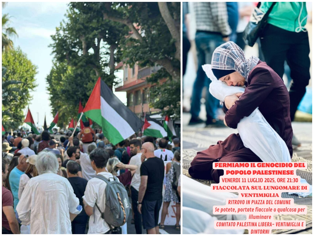 Il Comitato Palestina Libera di Ventimiglia organizza una nuova fiaccolata per venerdì 11 luglio. Il ritrovo sarà in piazza del Comune alle ore 21,30, per poi proseguire in corteo verso il lungomare.