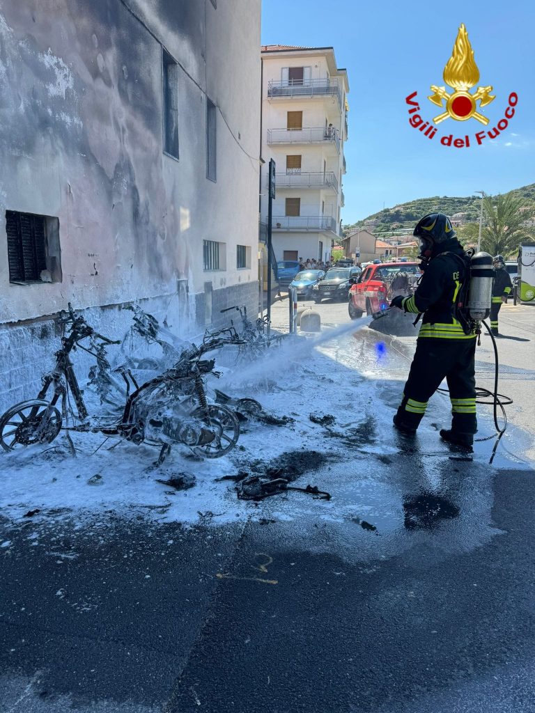 Nel pomeriggio di oggi i vigili del fuoco del distaccamento di Sanremo sono intervenuti a Riva Ligure per un incendio che ha coinvolto diversi veicoli a due ruote. L’allarme è scattato in via Allavena, dove le fiamme hanno distrutto cinque motorini.
