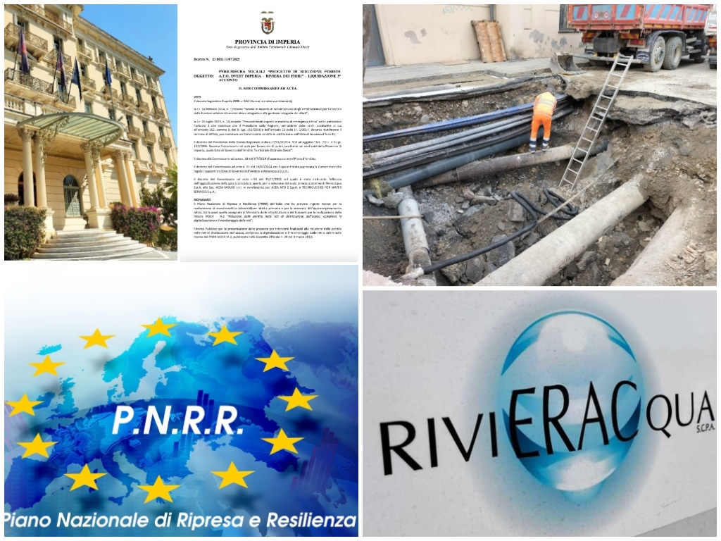La Provincia di Imperia ha liquidato un nuovo acconto di 1,3 milioni di euro a Rivieracqua per il progetto di riduzione delle perdite nelle reti idriche. Si tratta del terzo pagamento nell’ambito del Piano Nazionale di Ripresa e Resilienza (PNRR).