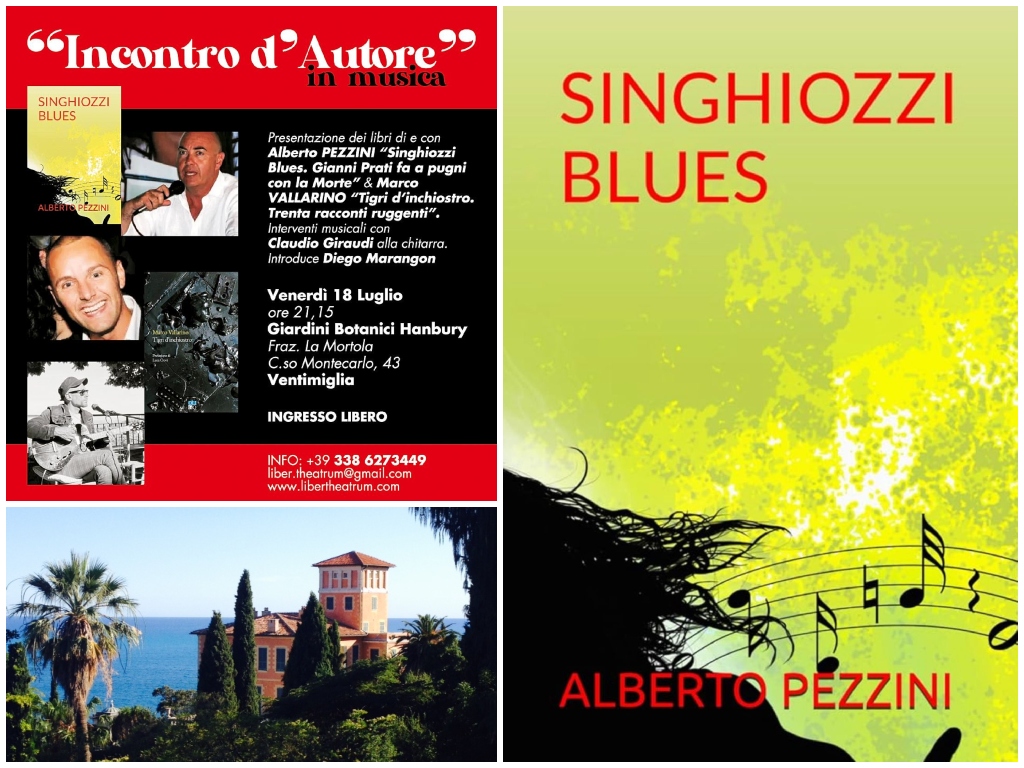 Il nuovo appuntamento, a ingresso libero e gratuito, per un doppio e contemporaneo incontro d’autore in musica – fissato per Venerdì 18 Luglio alle ore 21.15 – vedrà salire sul palco, posizionato nel bel piazzale di fronte alla Villa, gli scrittori Alberto Pezzini con il suo ultimissimo e appena pubblicato nuovo romanzo “Singhiozzi Blues. Gianni Prati fa a pugni con la Morte” e Marco Vallarino con il suo “Tigri d’inchiostro. Trenta racconti ruggenti”.