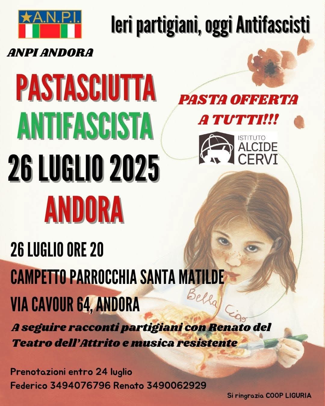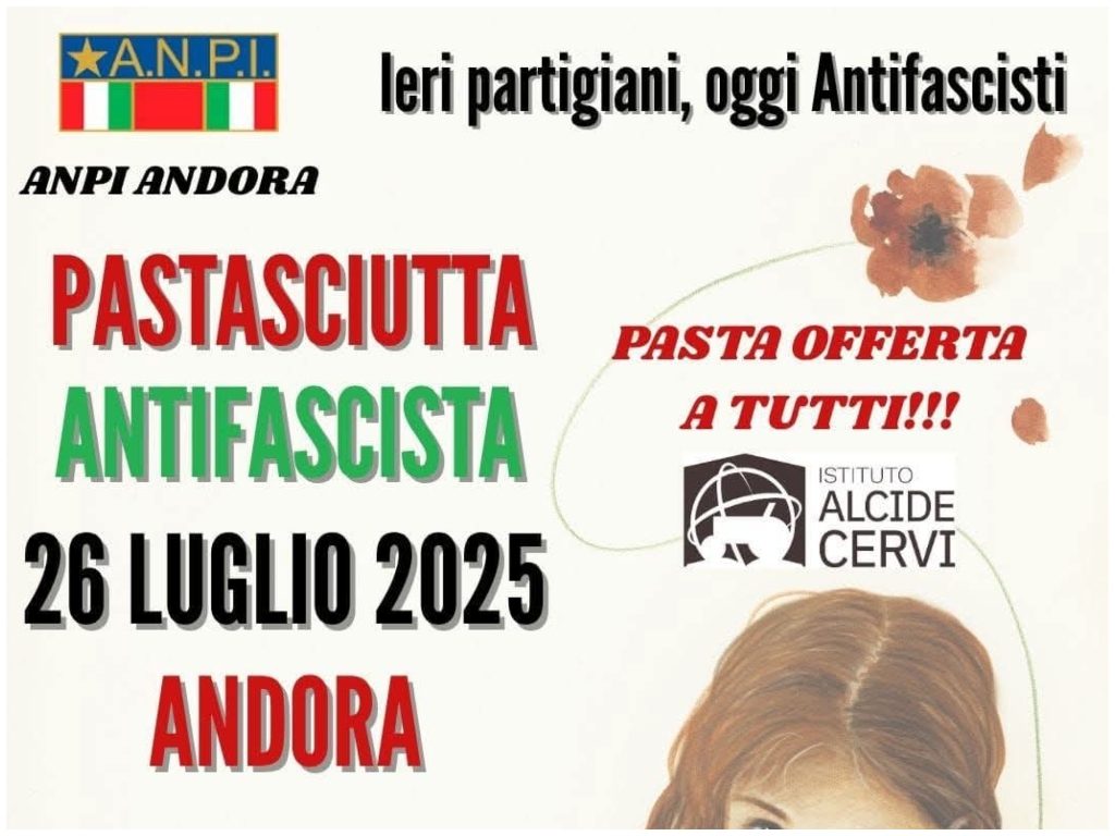Per il terzo anno consecutivo il Teatro dell’Attrito sarà ospite della Pastasciutta antifascista organizzata dall’Anpi di Andora che si terrà sabato 26 presso il campetto della parrocchia di santa Matilde in via Cavour 64.