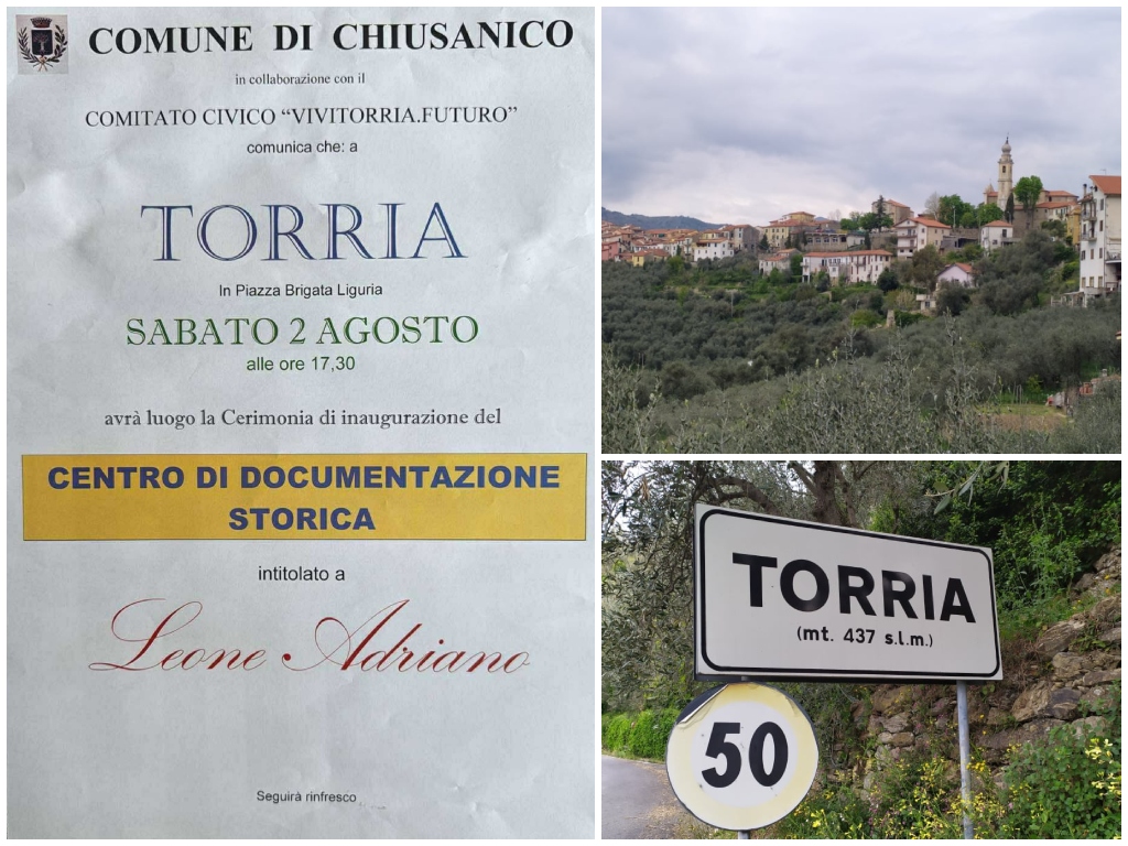 Sabato 2 agosto alle ore 17,30 verrà inaugurato il Centro di Documentazione Storica intitolato a Leone Adriano in Piazza Brigata Liguria a Torria, frazione di Chiusanico. Il Centro nasce grazie all’attività del Comitato Civico no profit “Vivitorria.Futuro“, nato nel 2023 con fini culturali e ricreativi.