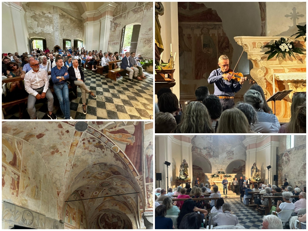 Durante la serata, i partecipanti hanno potuto ammirare gli affreschi e i polittici firmati da Guido da Ranzo, pittore locale del Quattrocento. Il percorso storico-artistico è stato condotto dallo storico dell’arte Alfonso Sista, mentre le letture poetiche e letterarie sono state interpretate dall’attore e regista Pino Petruzzelli. L’accompagnamento musicale del violinista Eliano Calamaro ha creato un’atmosfera intensa e coinvolgente, fondendo arte e parole in un’esperienza immersiva.