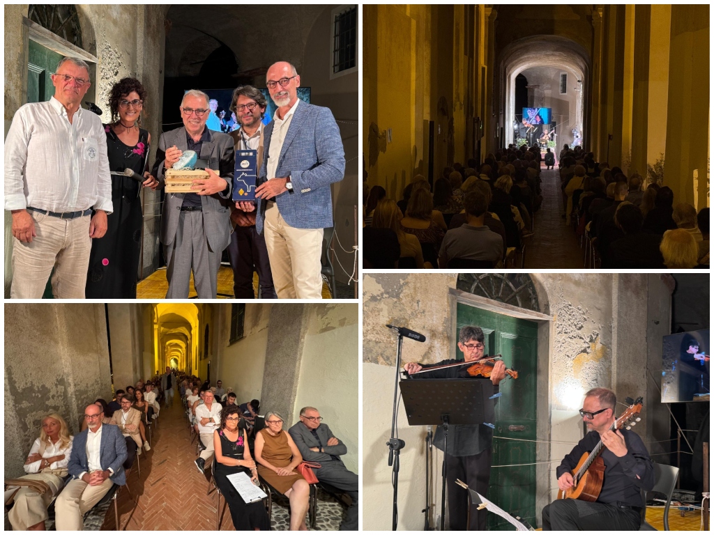 Dopo il suono delle campane, quello del violino di Giovanni Sardo e della chitarra di Simone Mazzone, che hanno saputo conquistare il pubblico, in una serata da tutto esaurito, con musiche di Paganini e Piazzolla. A metà del programma del duo violino e chitarra, la consegna del “Premio delle Logge 2025” al dottor Carlo Amoretti, per anni responsabile delle attività per le Disabilità dei minori dell’Asl imperiese e direttore del Distretto 3 Imperiese. Il dottor Amoretti, forte della sua esperienza di medico volontario in teatri di guerra e di disastri naturali, si è unito all’appello di solidarietà per il popolo palestinese. Sul palco insieme a lui, per la consegna del premio, il Priore della Confraternita di San Pietro Giorgio Ansaldi, il vicesindaco Giuseppe Fossati e il rappresentante del direttivo di PàntaMusicàAps, Marco Revello. La serata è stata presentata da Roberta Moschella.