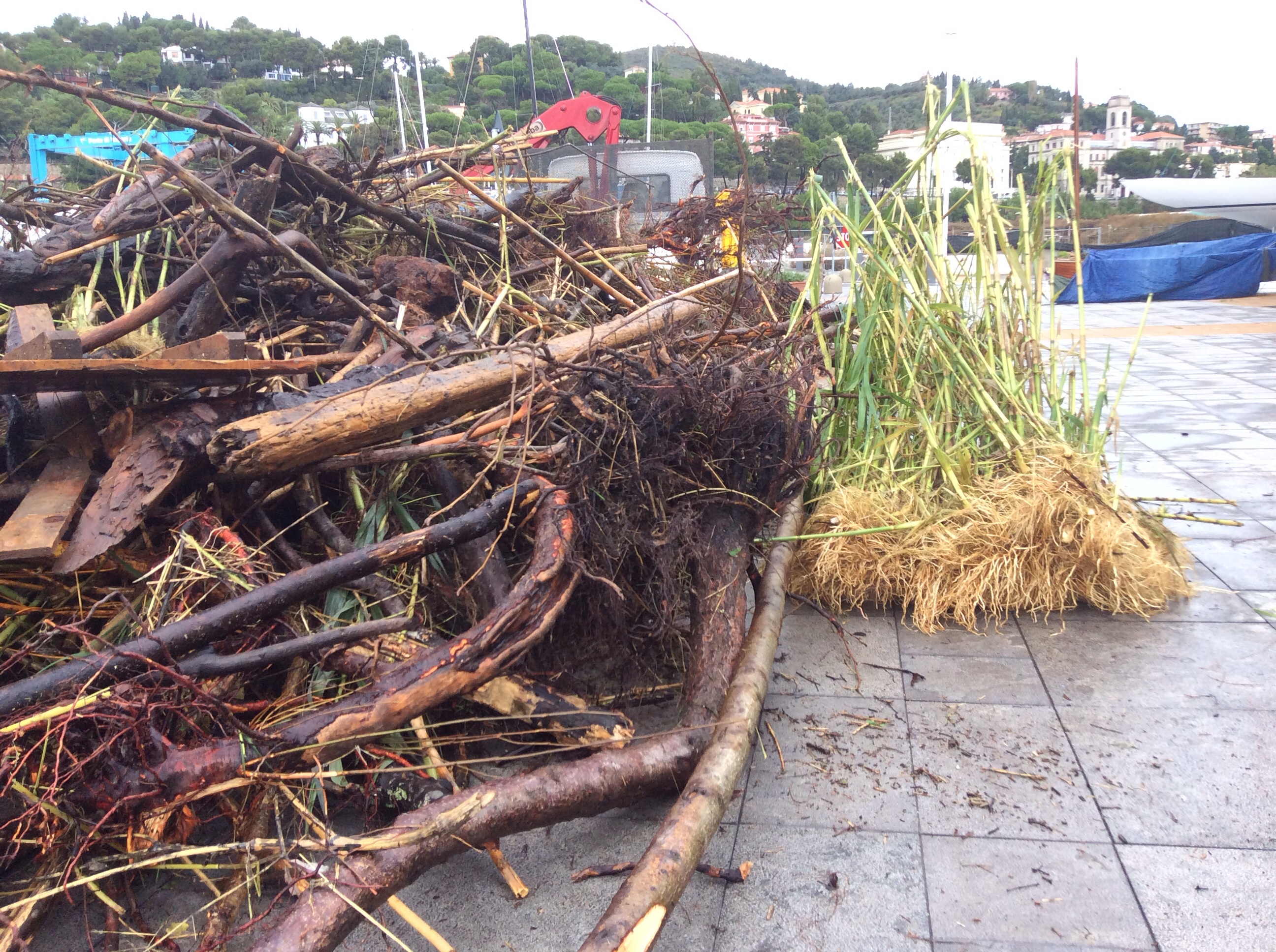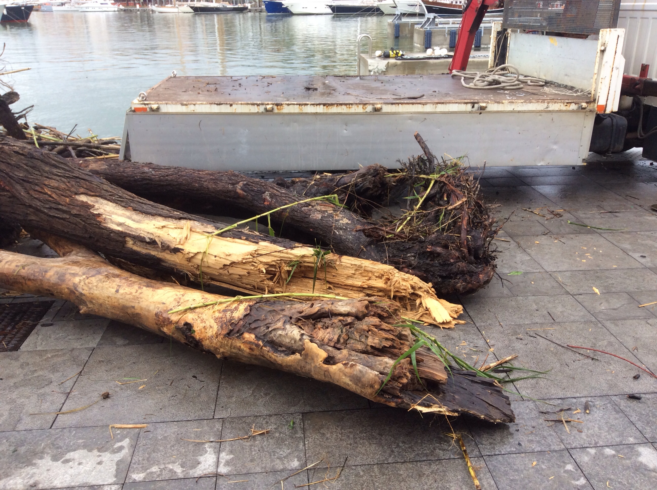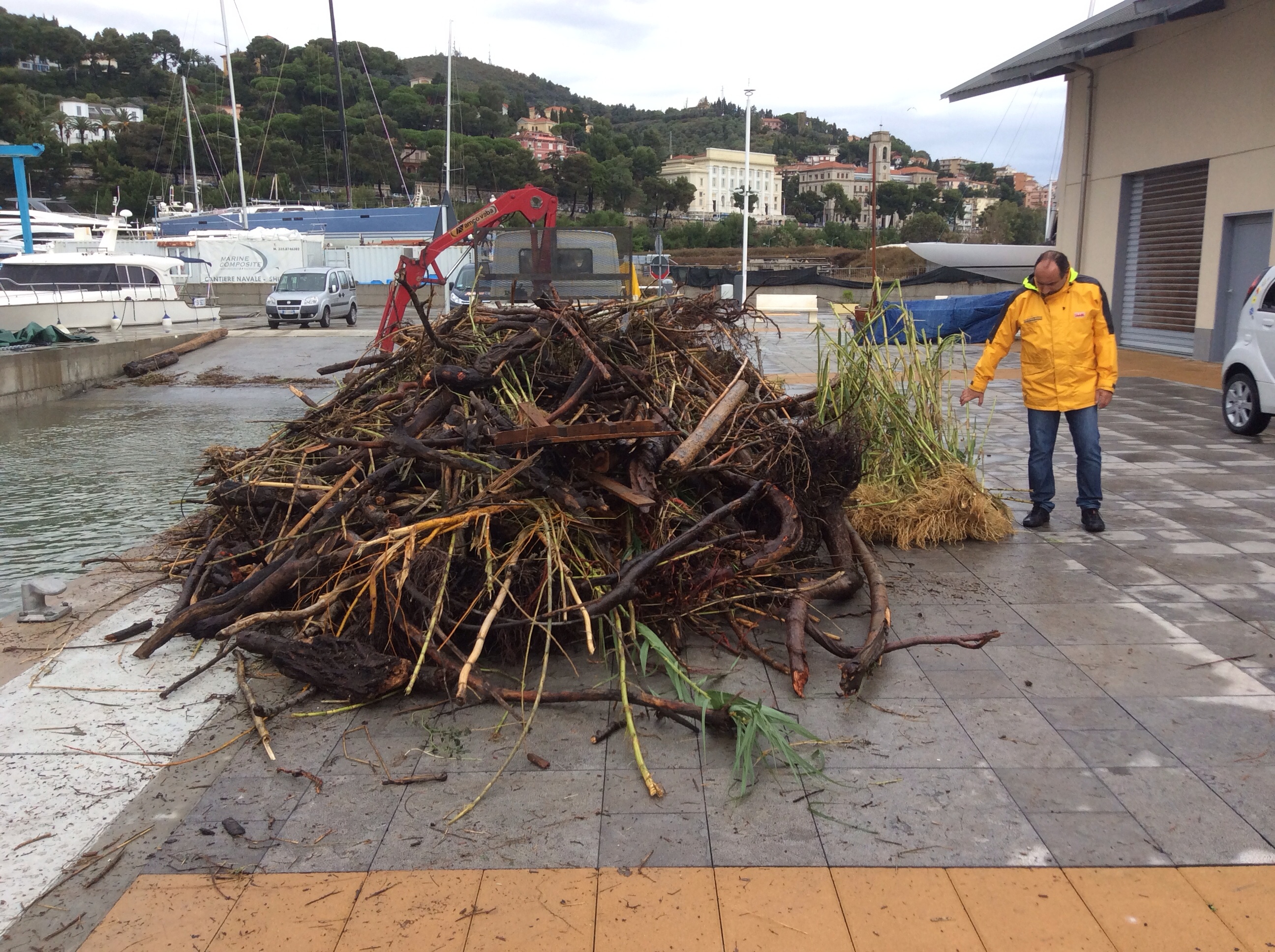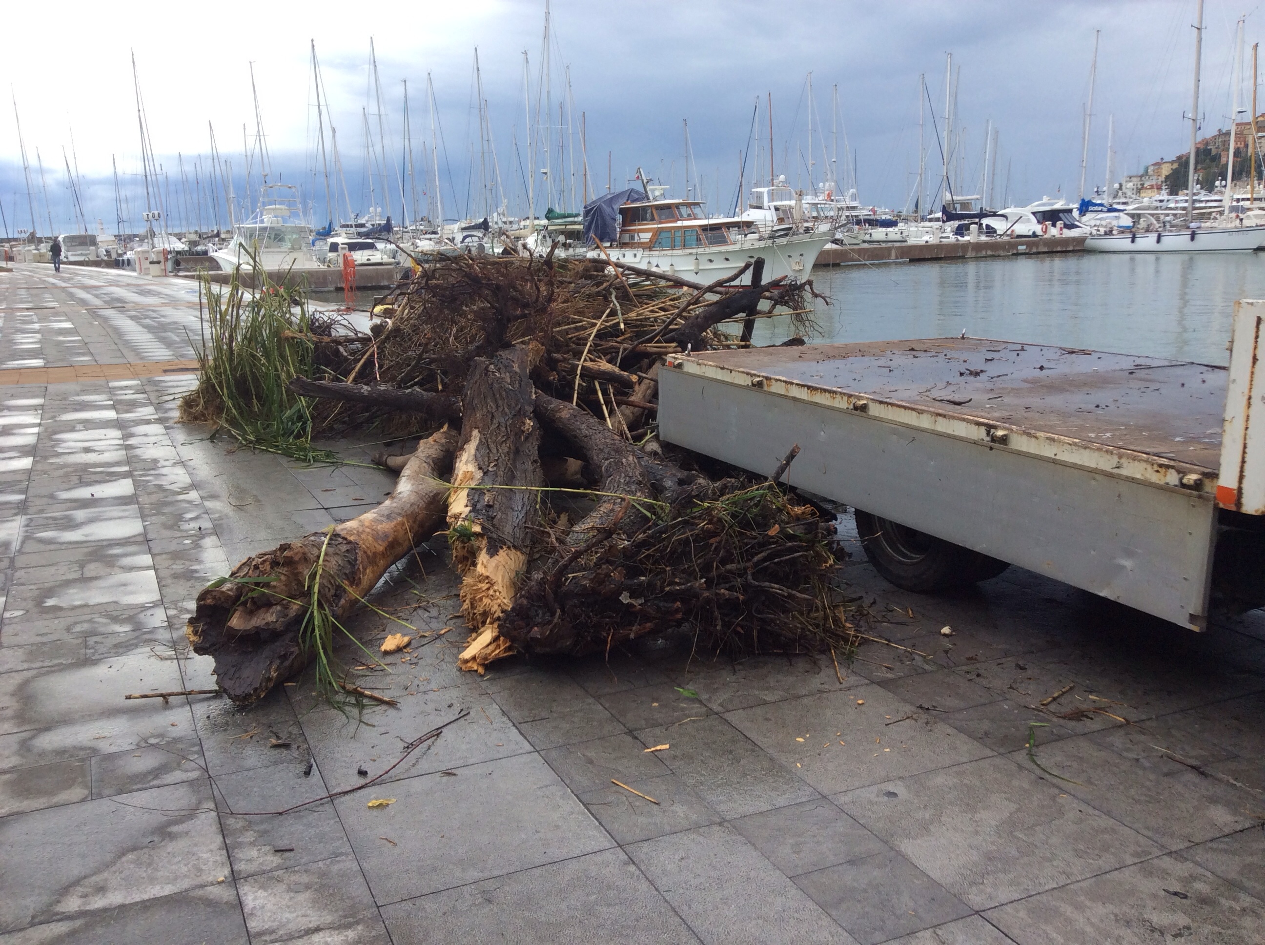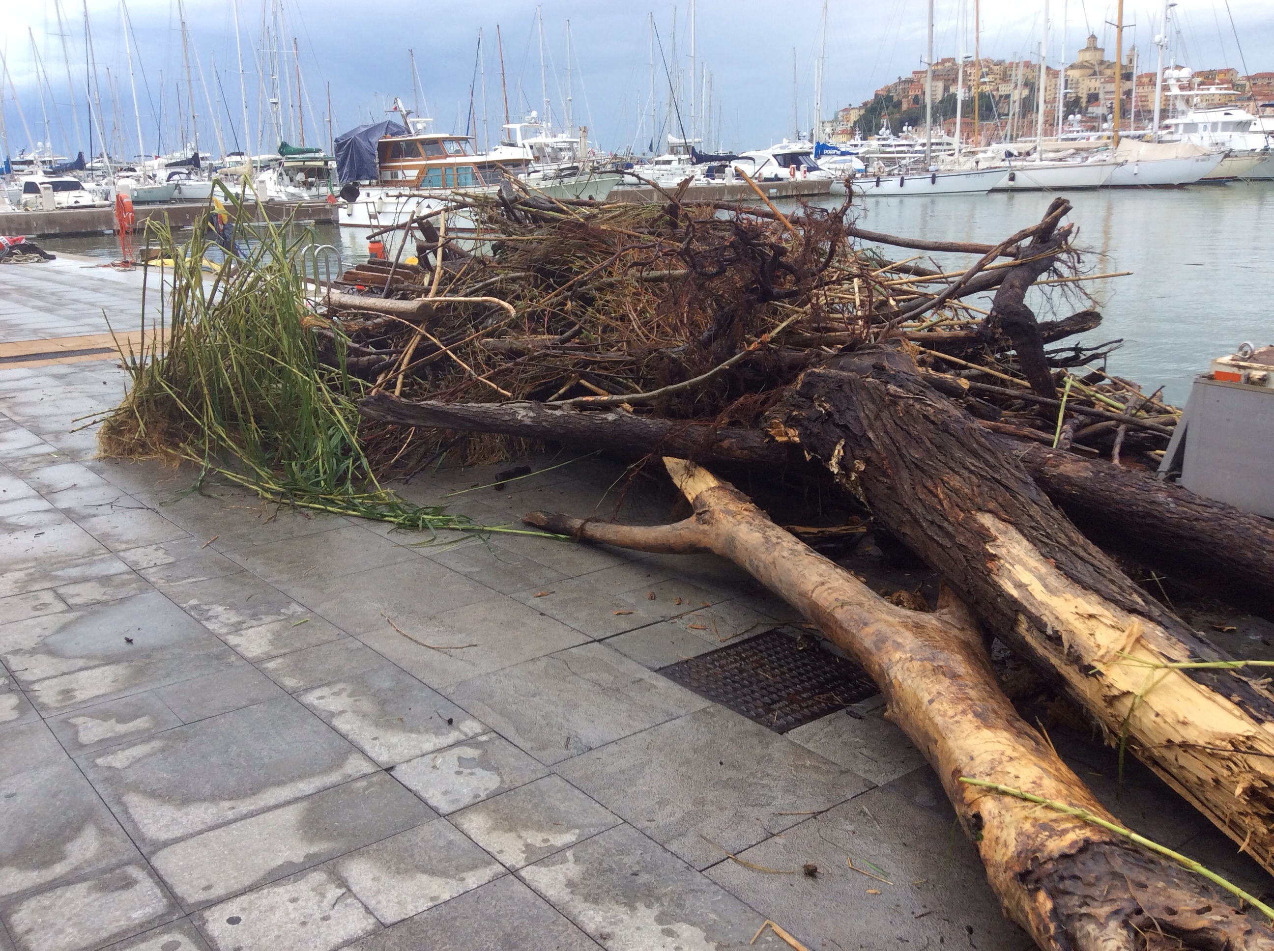 Impressionante la mole di detriti recuperati, tra cui veri e propri tronchi di alberi di pino e di eucalipto. I dipendenti della Go Imperia hanno lavorato in mare, a bordo di un gommone, trasportando e trainando i detriti sino al pontile del molo San Lazzaro dove un camioncino con una gru della Marittima Sub Service ha provveduto al recupero.