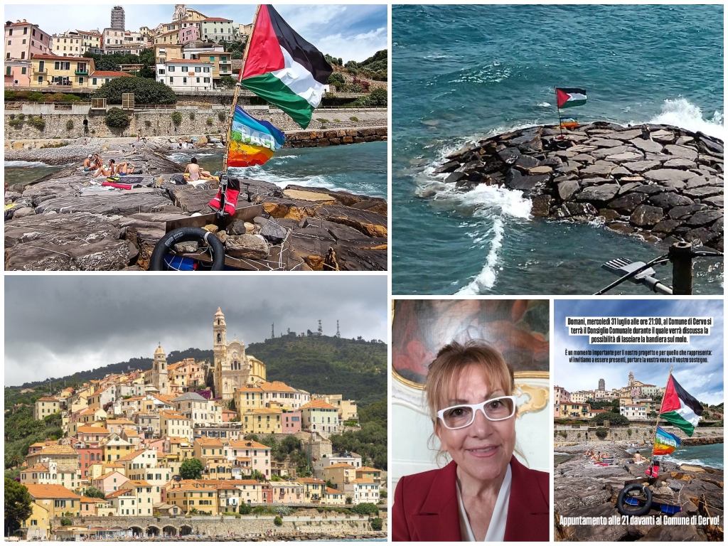 Potrebbe diventare un vero e proprio caso politico all’interno della maggioranza del sindaco Lina Cha, la bandiera della Palestina issata sul molo tra la spiaggia del Pilone e Marina de Re a Cervo, lo scorso 12 luglio dal movimento “Mille Zattere per la Palestina”.