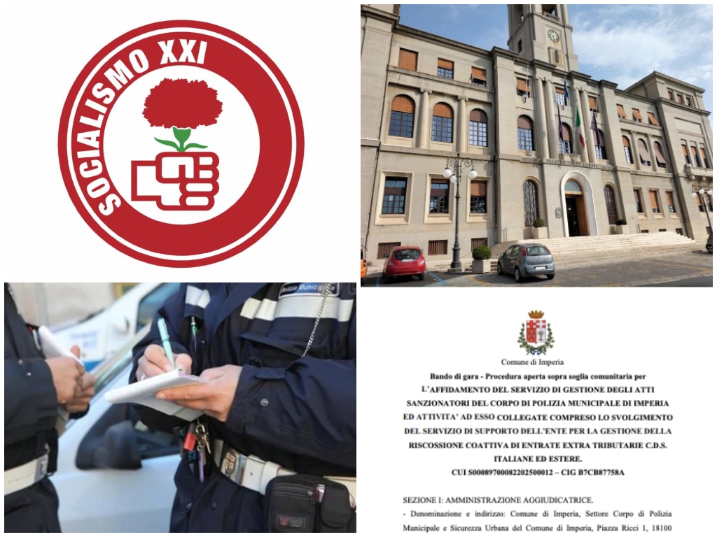 La Sezione di Imperia del Partito Socialismo XXI interviene con una nota stampa in merito al bando, emesso dal Comune per l’appalto pubblico di servizio per la gestione delle multe.