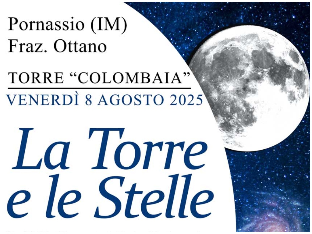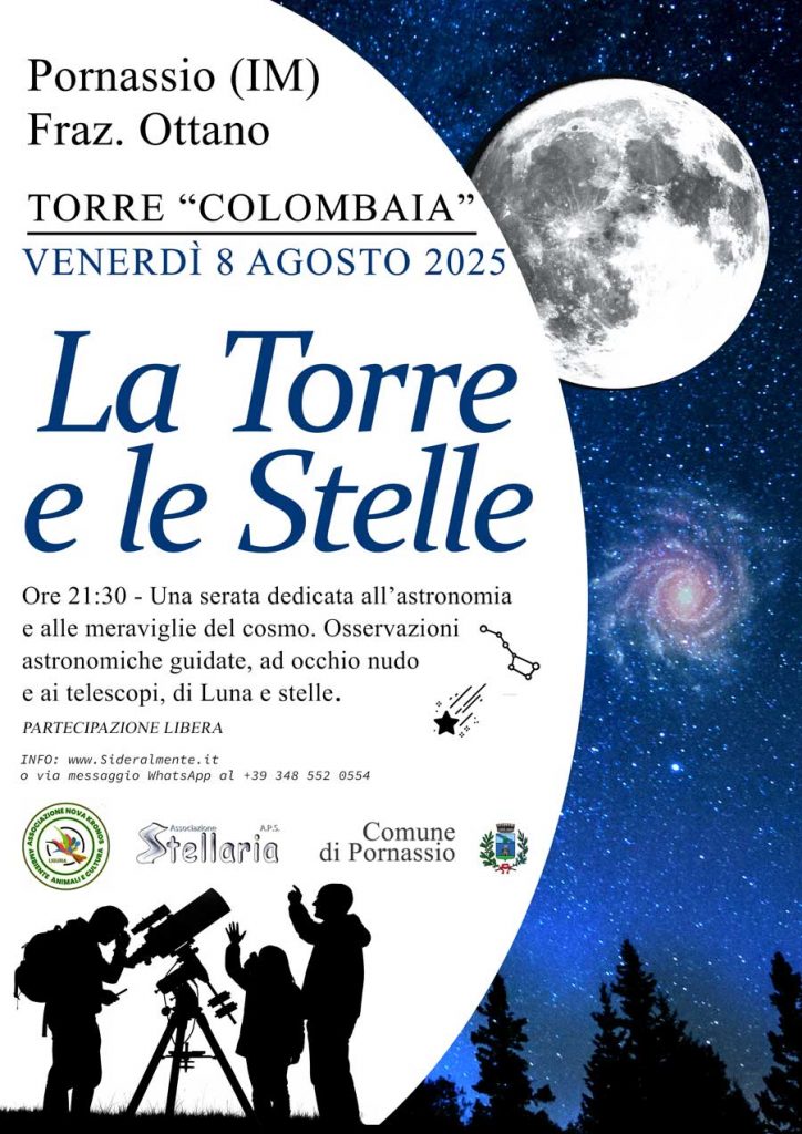 Un appuntamento da non perdere per tutti gli amanti del cielo stellato e della natura: venerdì 8 agosto, a partire dalle ore 21:30, la storica Torre “Colombaia” nella frazione Ottano di Pornassio si trasformerà in un palcoscenico d’eccezione per svelare la magia del firmamento.
