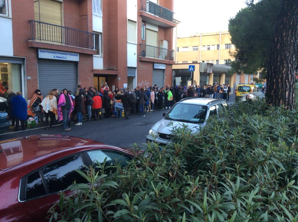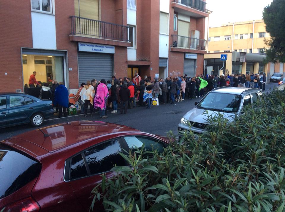 Questa mattina alle otto quando il centro Pastore ha aperto si è trovato così davanti a circa 160 persone con gli occhi gonfi dal sonno, avvolti nelle coperte che hanno consegnato ai dirigenti l’ordine di arrivo stilato dai presenti. Una donna dalla finestra del palazzo si è sporta e li ha guardati tutti incitandoli a pugni chiusi. Del resto, tutte queste persone sono degli eroi sofoclei, moderni e tragici allo stesso tempo e che, con il loro gesto, hanno raccontato involontariamente uno spaccato di Italia e del nostro tempo.