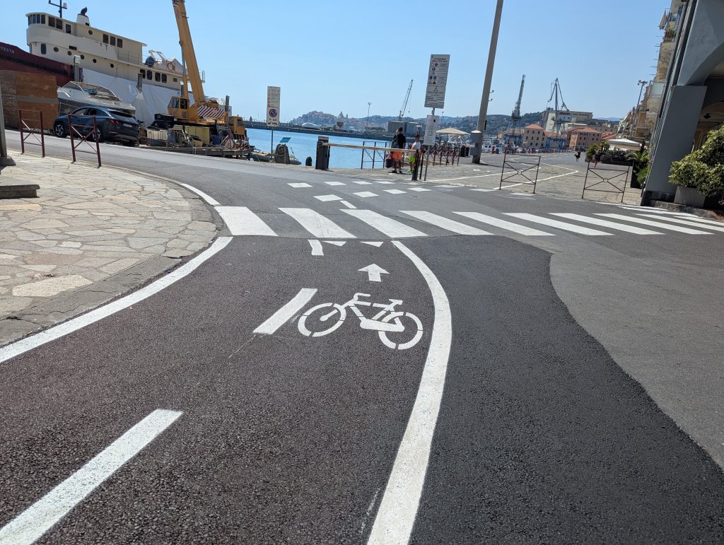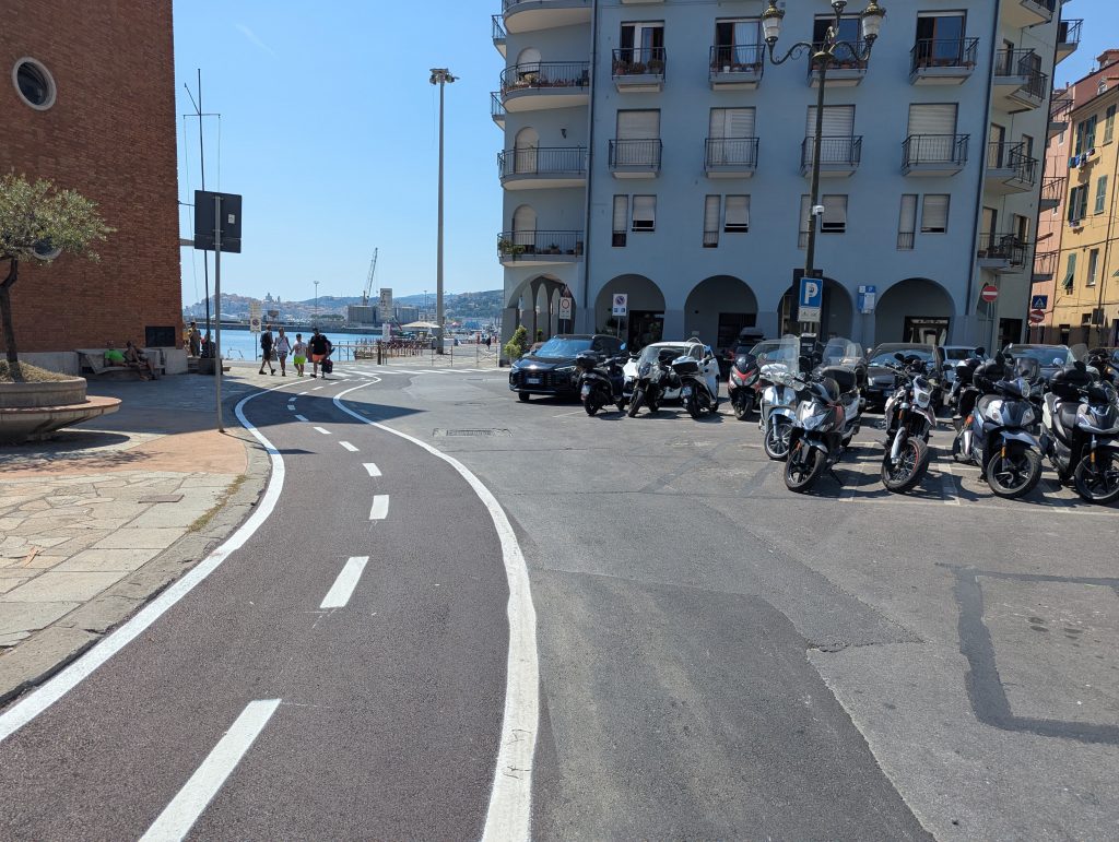 Anche per questo nuovo segmento sono stati eliminati alcuni stalli destinati alla sosta di scooter e autovetture, una scelta che si aggiunge ai parcheggi già sacrificati per la realizzazione del tratto principale sulla Spianata.