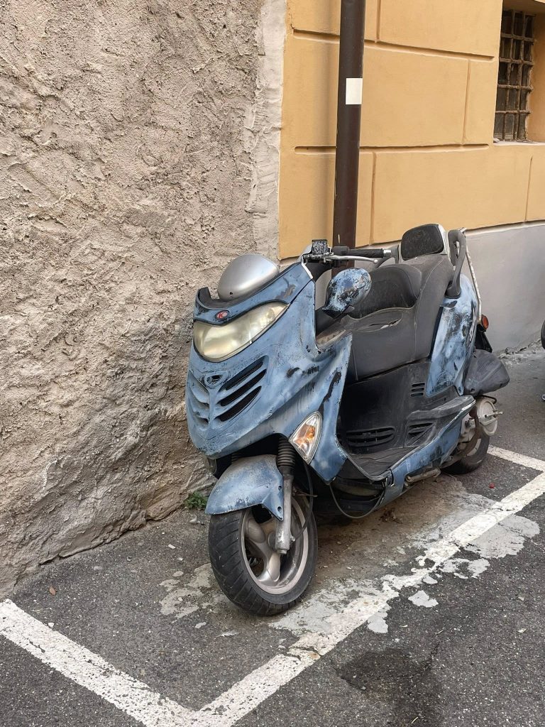 “Oggi vi presento la situazione di via Sciorato Giacomo, zona Parasio vicino alla palestra Maggi, una via di circa 100 metri, dove gli abitanti vivono con buche nella strada, moto abbandonate da anni e senza pubblica illuminazione.