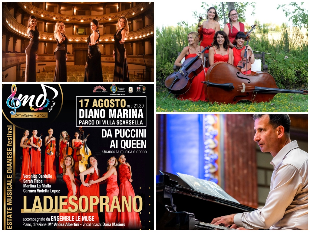 spettacolo (unica data in Liguria per il 2025) “Quando la musica è donna, da Puccini ai Queen”, un viaggio tra i capolavori del pop e della lirica, con protagoniste nove affascinanti artiste di altissimo livello: il quartetto LadieSoprano e il quintetto d’archi Le Muse. Insieme a loro, al pianoforte e alla direzione, ci sarà il M° Andrea Albertini.