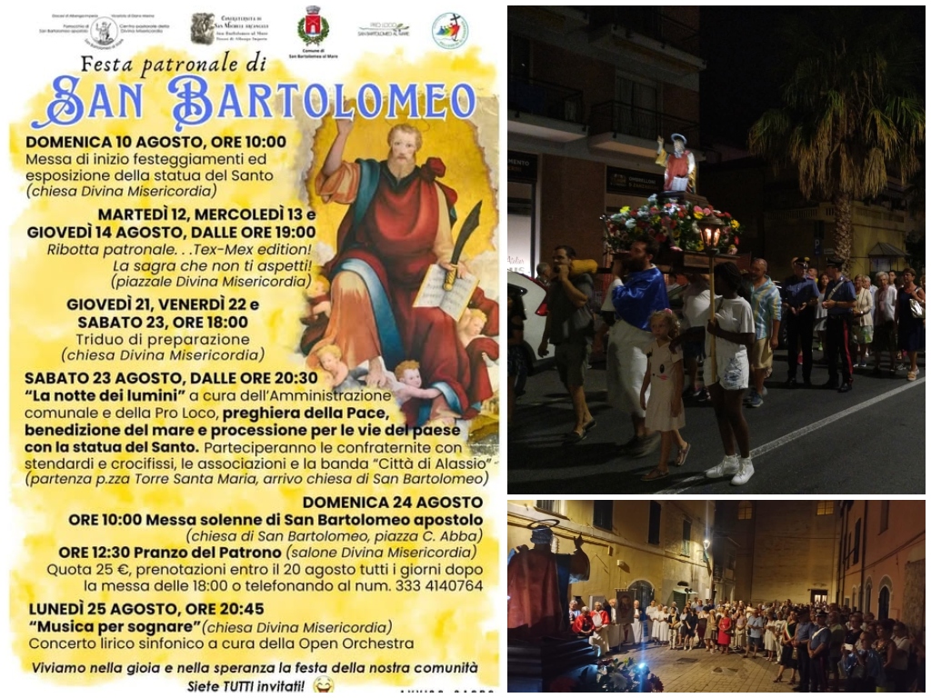 San Bartolomeo al Mare si prepara alla Festa Patronale in programma domani, sabato 23 agosto. Un evento che vede collaborare insieme gli stabilimenti balneari, i volontari, le associazioni sportive, la parrocchia stessa, la Proloco e il Comune.