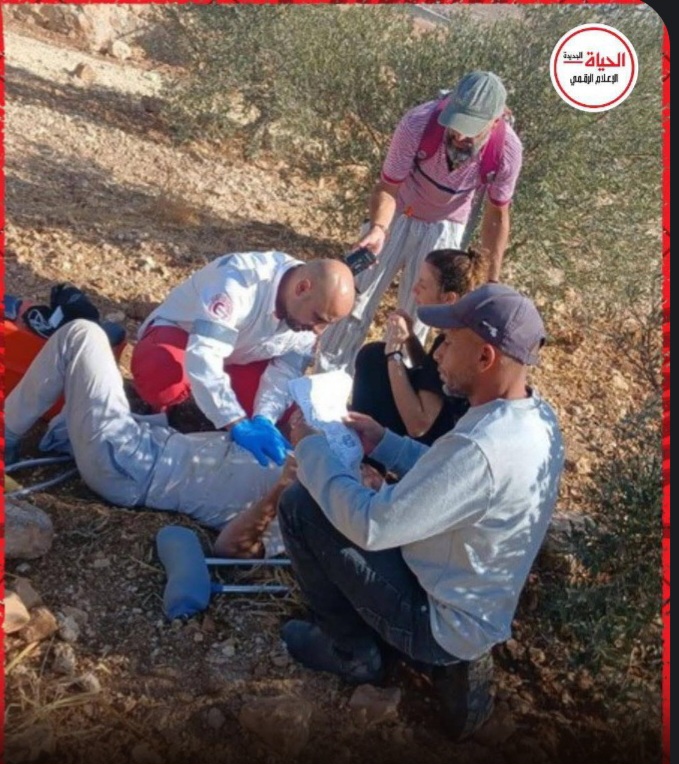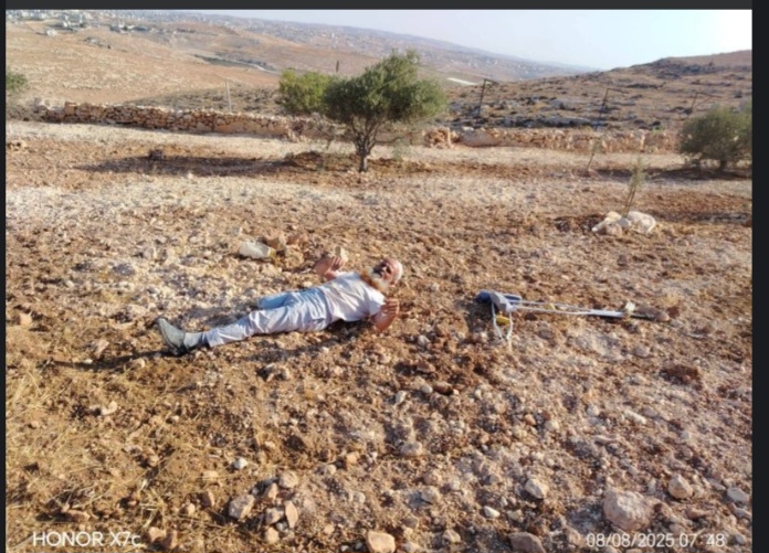 Khirbet Al-Rakeez, nella regione di Massafer Yatta. Sheikh Al-Saeed Al-Amur è stato nuovamente assalito dai coloni mentre lavorava la sua terra sorreggendosi con la stampella, perché quattro mesi fa i coloni che lo attaccarono – il motivo è sempre quello: costringere i palestinesi ad abbandonare le loro proprietà – gli spararono alla gamba… forse con un proiettile dum-dum che esplode nel corpo? Sheikh ha subito l’amputazione della gamba destra. Lo hanno nuovamente ferito e abbandonato a terra dove è rimasto fino all’arrivo dell’ambulanza. Ha dichiarato: “Non ho paura di un colono o dell’esercito. Temo solo Dio. Io rimango nella mia terra a costo di morire. Non cedo all’occupante”.