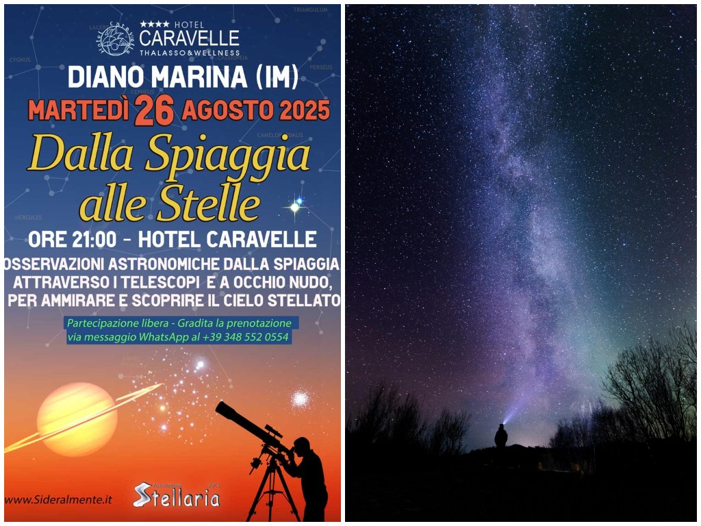 Una serata tra mare e cielo, con lo sguardo rivolto alle stelle. Martedì 26 agosto è in programma sulla spiaggia dell’Hotel Caravelle l’iniziativa “Dalla spiaggia alle stelle”, un appuntamento dedicato alle osservazioni astronomiche guidate, aperto a tutti i curiosi e appassionati.