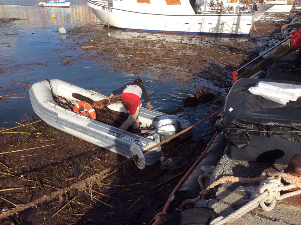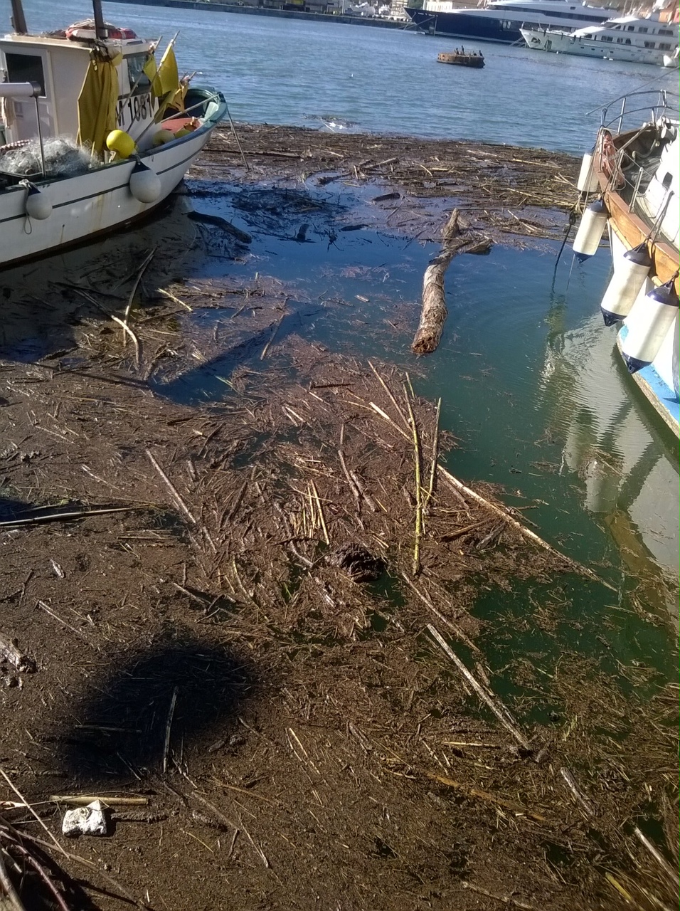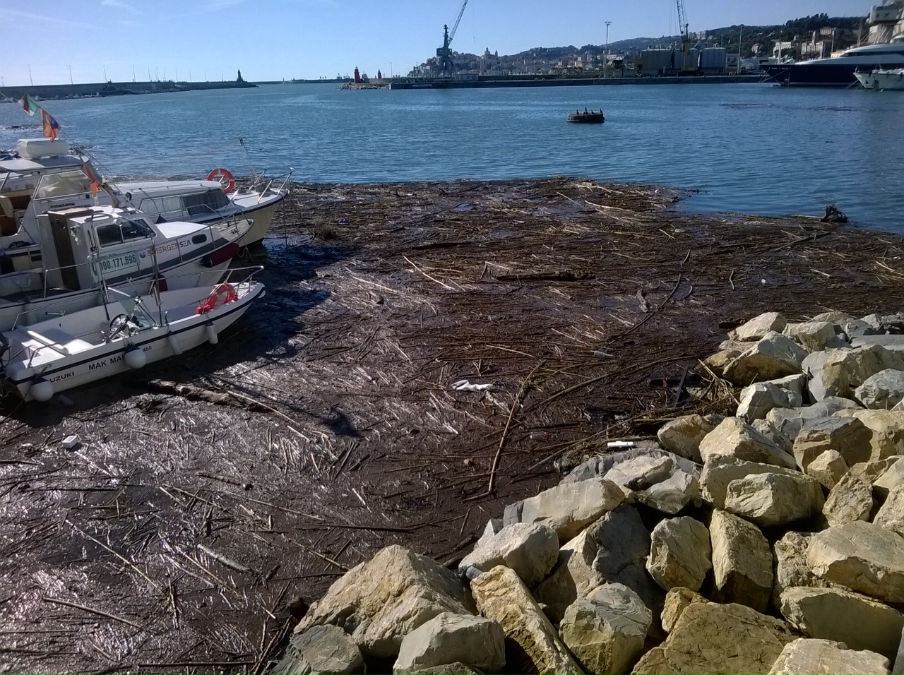 Imperia. Le piogge dei giorni scorsi hanno portato verso il mare detriti, rami, foglie… il tutto si è depositato nelle acque del porto di Oneglia rendendo molto difficile per i pescatori l’uscita verso il mare aperto per il rischio che alcuni di questi detriti si incastrino nel motore.