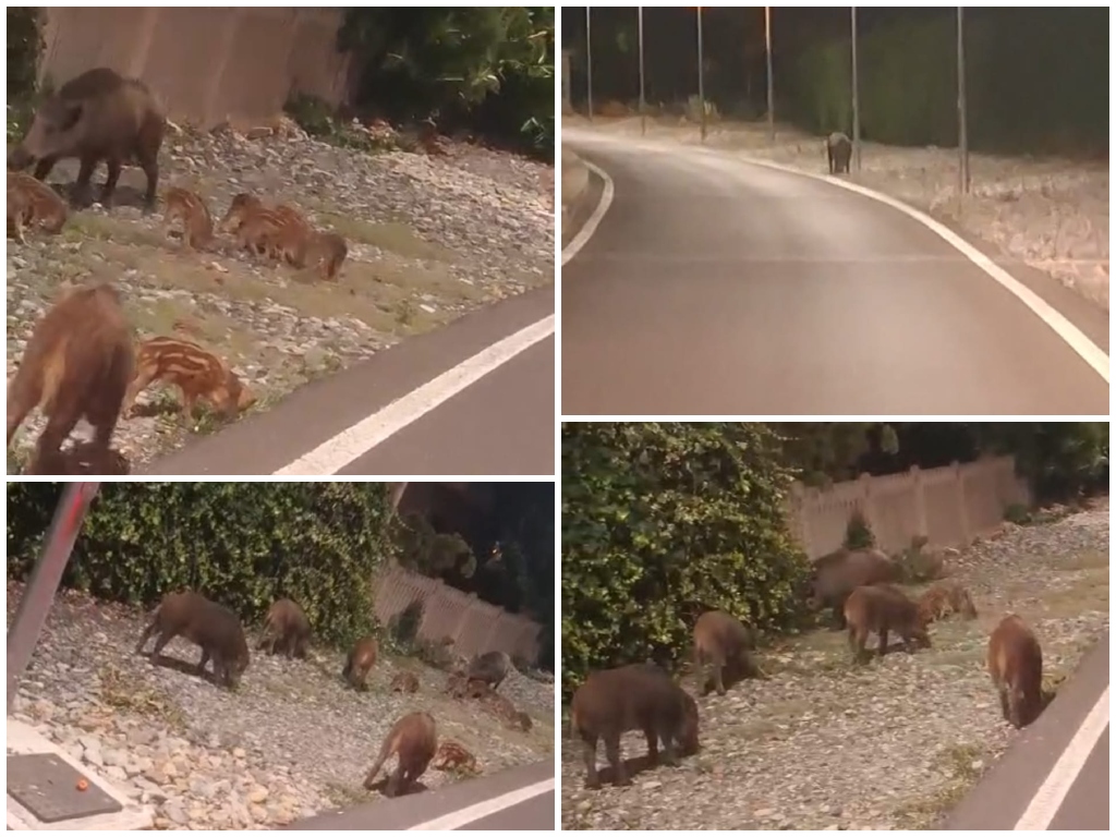 Ieri sera una famiglia di cinghiali, composta dai genitori e dai piccoli, è stata avvistata e fotografata nei pressi della pista ciclabile di Imperia, nella zona dell’ex stazione ferroviaria.