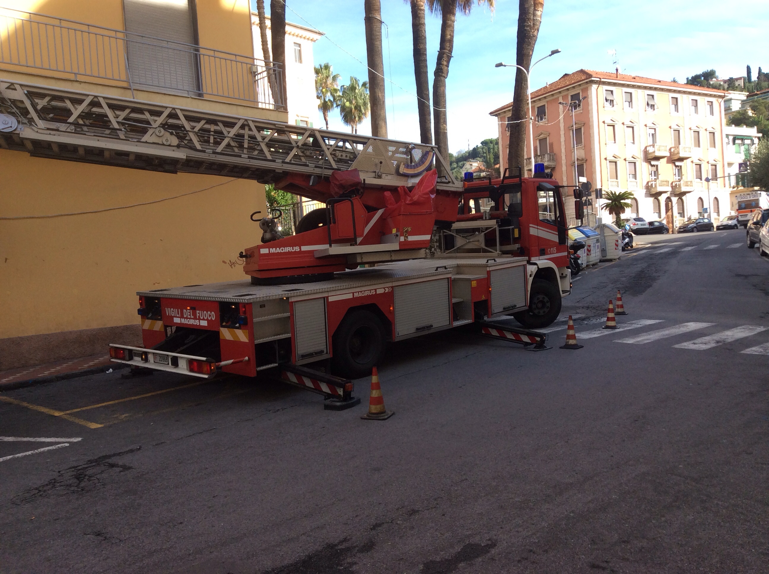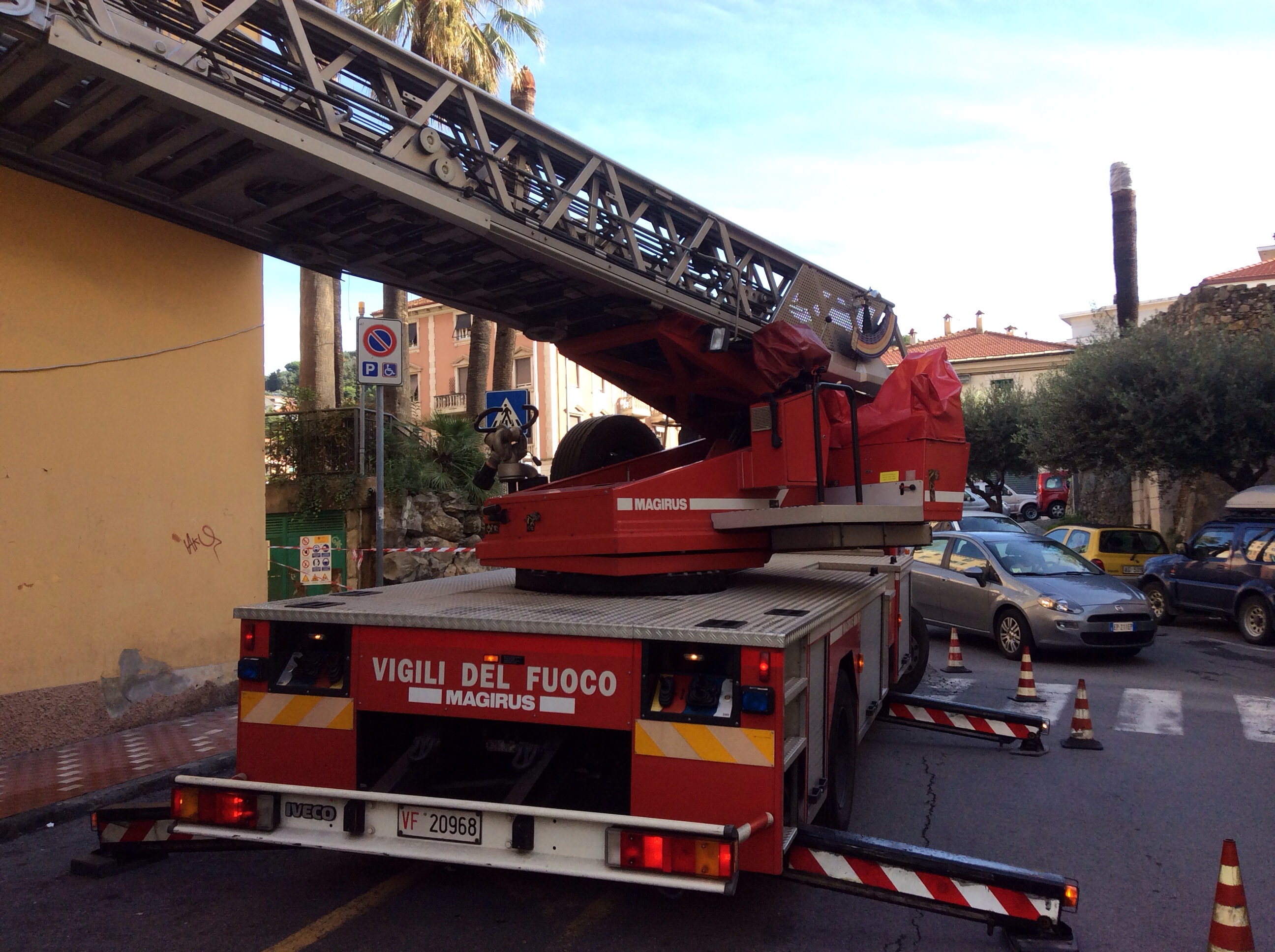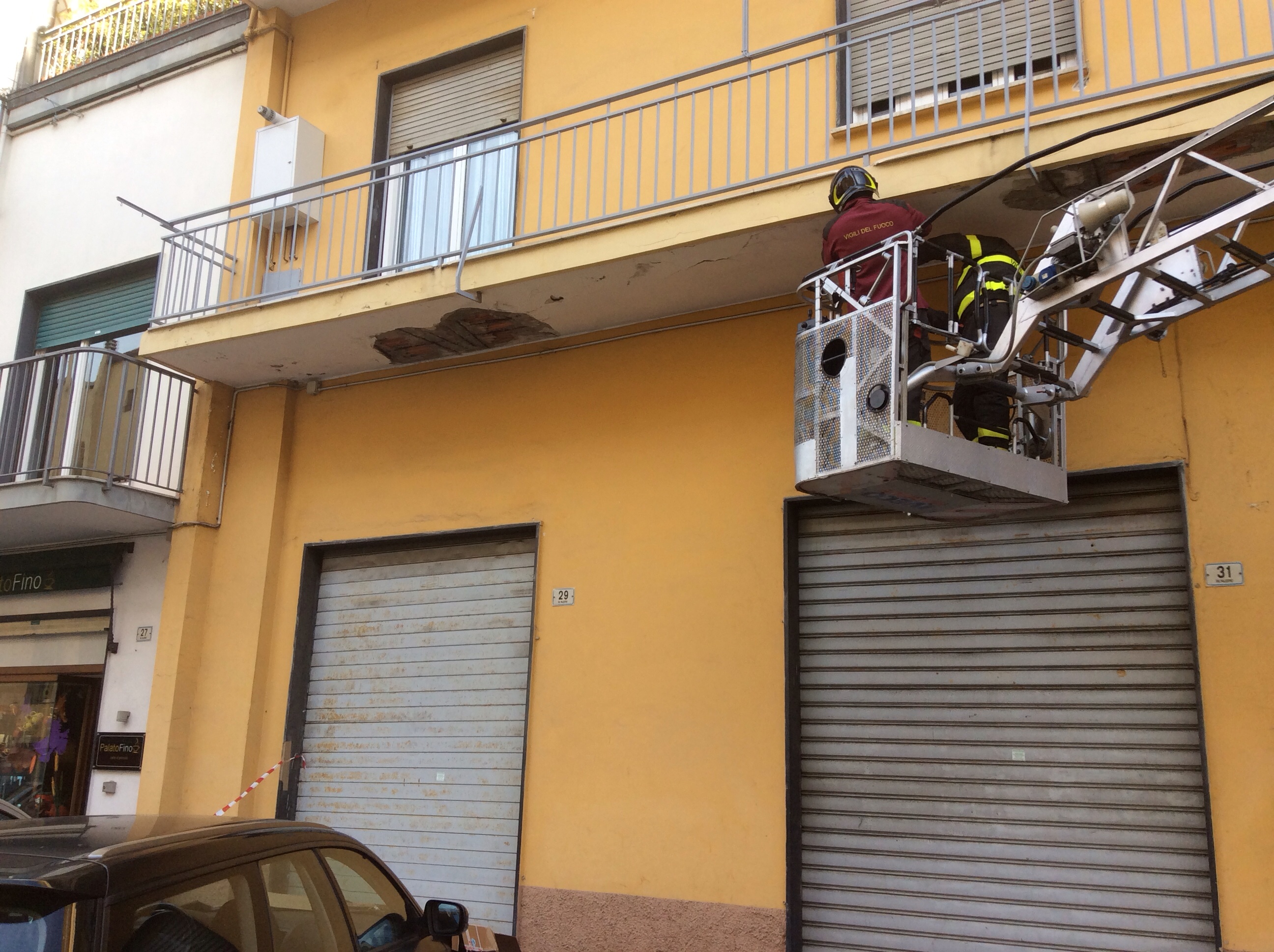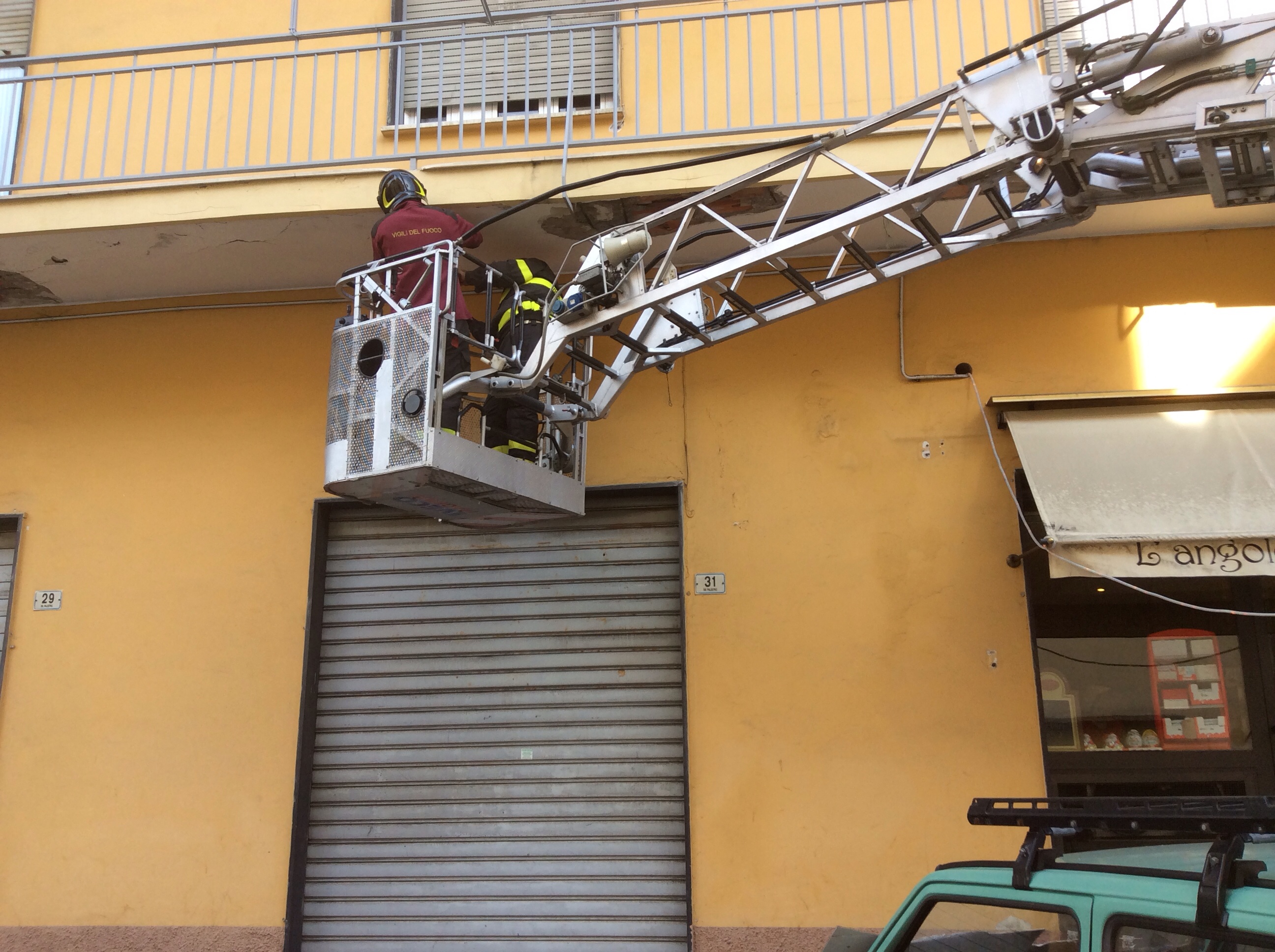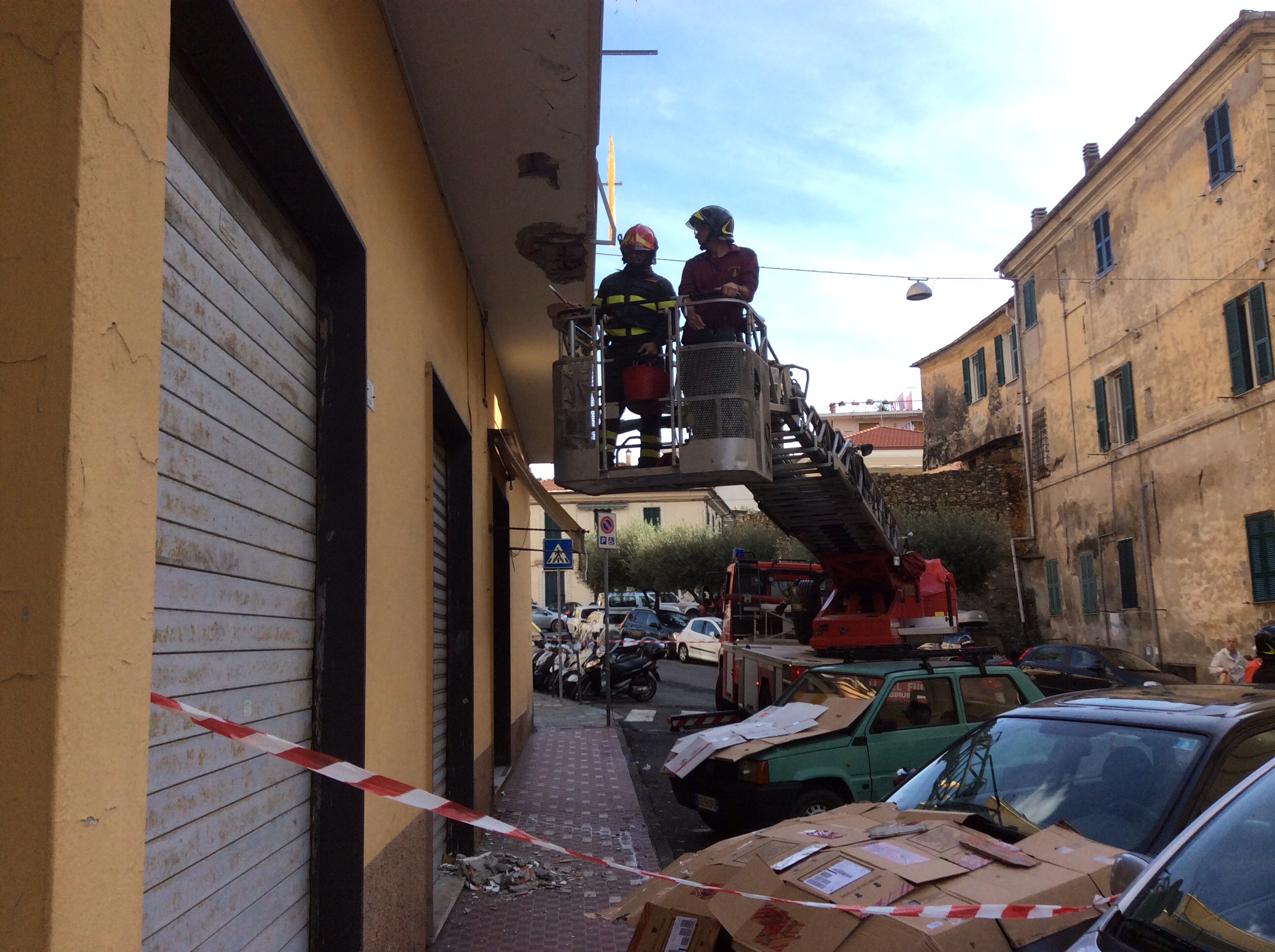 Intervento di Vigili del Fuoco e Polizia Municipale questa mattina in via Palestro a causa della caduta di calcinacci da alcuni terrazzi al primo piano di un condominio. Gli agenti della Polizia Municipale hanno transennato la zona interessata dalla caduta dei calcinacci e regolato il traffico, mentre i Vigili del Fuoco, per mezzo dell’autoscala, hanno messo in sicurezza l’area. Per fortuna la caduta dei calcinacci non ha interessato ne passanti ne tantomeno le auto parcheggiate nei pressi del condominio.