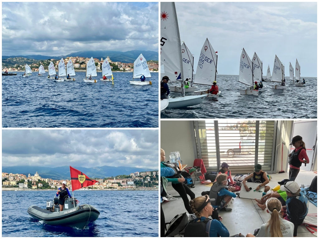 Le veliste Magdalena Maisch e Tetiana Nikitenkova dello Württembergischer Yacht-Club di Friedrichshafen, insieme ai loro atleti, hanno condiviso uscite in mare al largo di Imperia, regalando spettacolo con le loro vele.