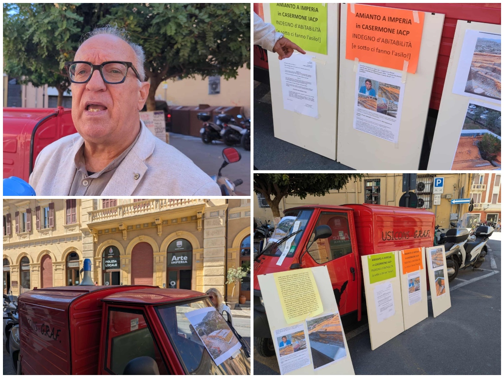 Spiega Gian Piero Buscaglia al nostro giornale: ““La protestaè contro l’amianto che c’è a Imperia. L’amianto è proibito, se a casa di un privato cittadino c’è il tetto in amianto, il Comune te lo fa togliere. Se invece queste case sono del comune o dell’arte ex istituto autonomo Case Popolari, tutto va bene.