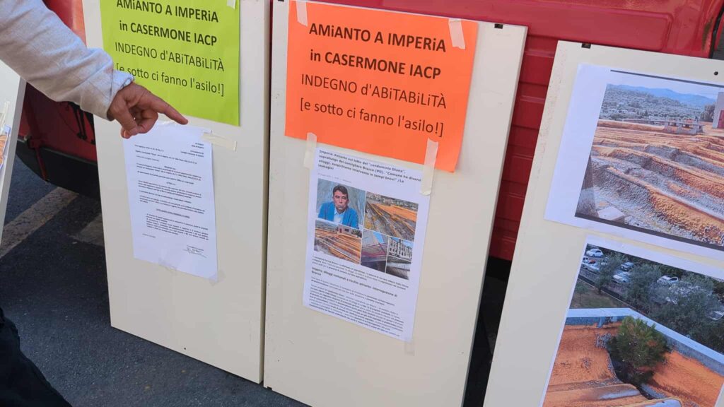 “La protesta è contro l’amianto che c’è a Imperia“, spiega Buscaglia. Il caso riguarda l’edificio di via Carlo Alberto dalla Chiesa 23-29, un complesso di quattro scale con 33 alloggi. La preoccupazione di Buscaglia cresce quando parla della vicinanza con il nuovo asilo di Piani.