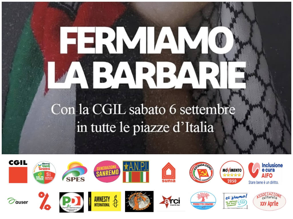 Sono chiamati a partecipare cittadini e cittadine, lavoratori e lavoratrici, pensionati e pensionate, studenti e studentesse, il mondo associativo e i giornalisti, per chiedere insieme che si fermino tutte le guerre e le barbarie e il genocidio in corso in Palestina.