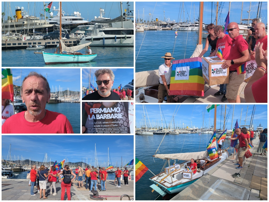 Una barca a vela carica di pacchi umanitari simbolici ha attraccato nel porto turistico di Imperia questo pomeriggio, sabato 6 settembre, durante la manifestazione di solidarietà per la Palestina organizzata in contemporanea ad altre iniziative simili in tutta Italia.