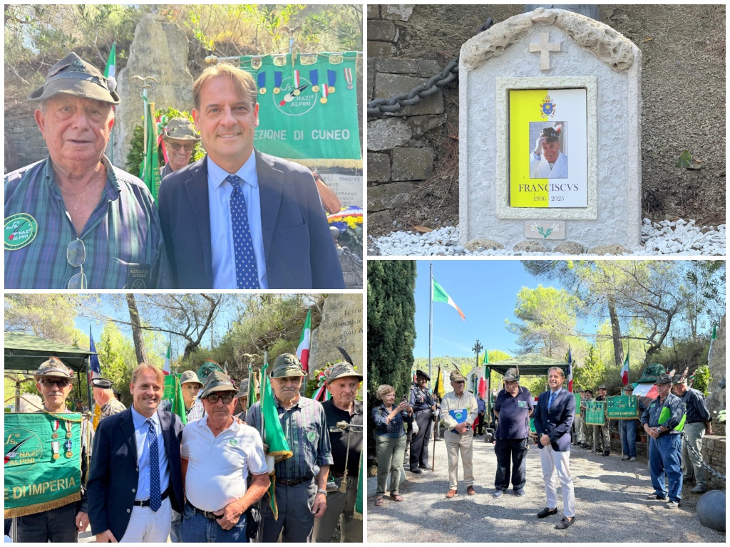 Una targa commemorativa in onore di papa Bergoglio “Alpino ad honorem” è stata svelata oggi a Ventimiglia, alla presenza dell’assessore regionale Marco Scajola.