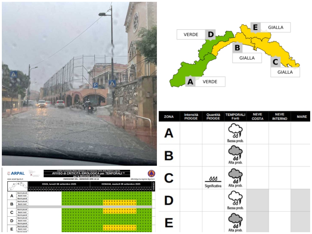 Arpal ha emesso allerta gialla per le zone di centro levante della regione (zone BCE) dalle ore 5,00 alle ore 18,00 di domani martedì 9 settembre. Sul resto della regione (Zone A e D) è prevista una bassa probabilità di forti temporali.