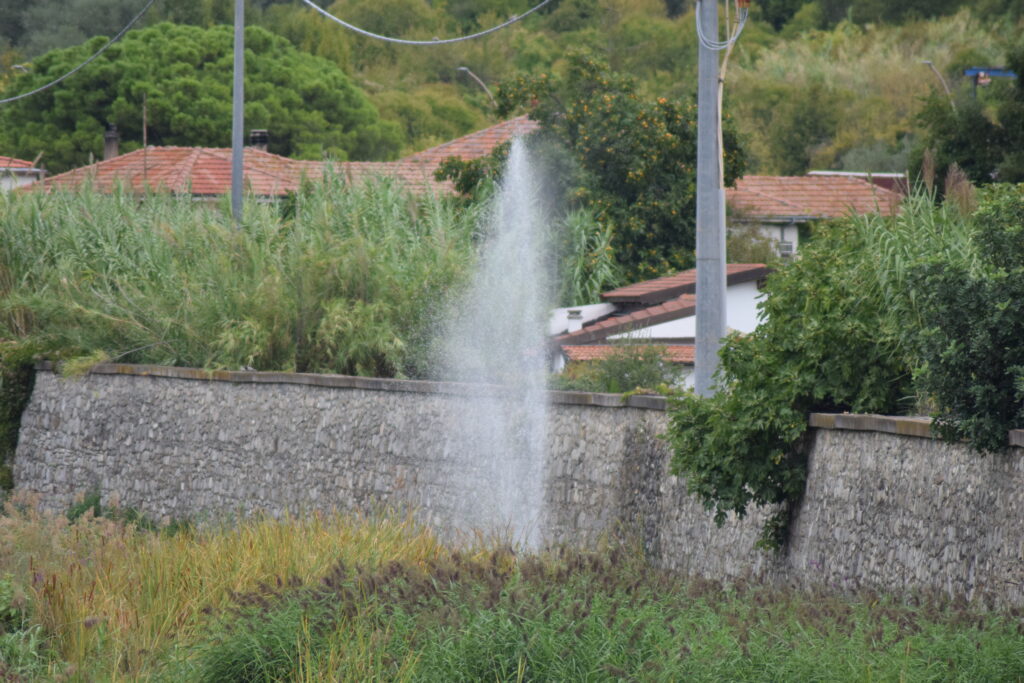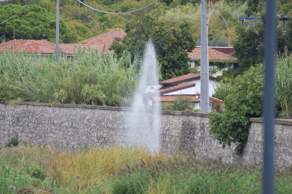Un geyser alto diversi metri è scoppiato questa mattina nell’alveo del torrente Prino, in zona Garbella. All’origine sembrerebbe esserci un guasto a una tubatura interrata nel torrente, che rompendosi ha iniziato a sparare litri d’acqua in aria, anche se le cause esatte restano ancora da chiarire.