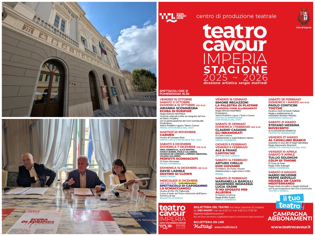 La Stagione 25/26 è la seconda organizzata da Teatro Pubblico Ligure con la direzione artistica di Sergio Maifredi e il sostegno del Comune di Imperia. Il programma completo in aggiornamento sul sito www.teatrocavour.it.