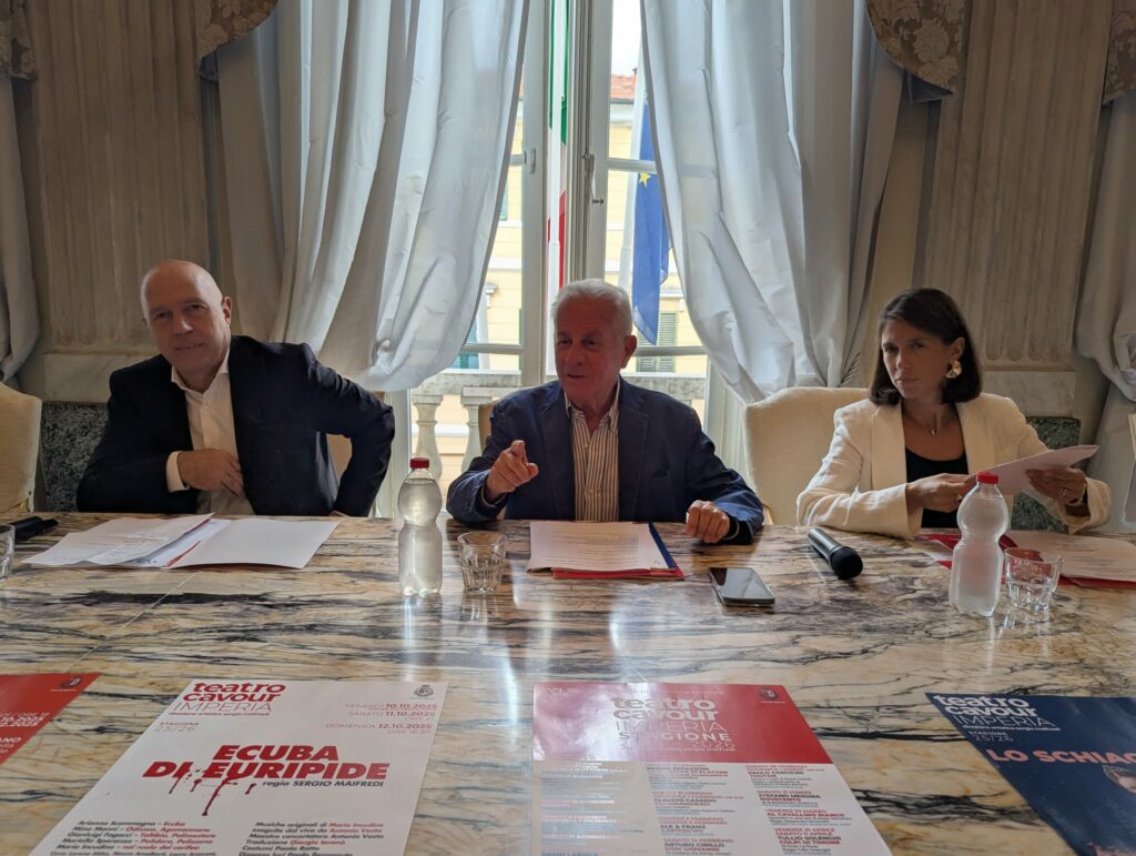 “È stata una sfida l’anno scorso – commenta il sindaco Claudio Scajola – Avendo investito la nostra comunità molte risorse sul rifacimento del teatro. Non è semplicemente un restauro, è sostanzialmente un nuovo teatro che dà ogni possibilità alle nuove tecnologie di poter fare spettacoli di alto livello, sia teatrali che cinematografici. Bisognava poi pensare a come gestirlo questo teatro. Abbiamo fatto una scelta che non tutti subito hanno condiviso e cioè di fare una gara e andare a cercare chi poteva gestire il teatro attraverso una proposta di programma e attraverso una capacità di gestione. Abbiamo indovinato. La gara l’ha vinta Sergio Maifredi che è un nome nel campo del teatro di prestigio, di cui avevo la grande fortuna di conoscere da tanti anni e che ha iniziato in qualche modo rischiando la sua attività e i risultati dell’anno scorso sono stati eccelsi. Un numero enorme di cittadini nostri, ma anche di turisti e delle città vicine.In buona sostanza il Teatro Cavour è diventato un centro culturale del ponente della Liguria e forse ci potremo anche allargare, poiché è diventato anche un centro di produzione, è diventato un centro culturale del nord Italia con un buon prestigio. Quest’anno si riparte con un percorso ancora più ampio, con numeri di spettacoli ancora maggiori e anche con le novità di aprirlo sempre di più all’esterno, ai giovani, alle scuole, addirittura al mercato settimanale, per far sì che sia un luogo in cui ci si incontra per vivere di cultura vera, per mangiare cultura, per crescere e siccome abbiamo aperto anche una parte di ristorazione all’interno del bar, come lui ha subito potuto sfruttare in modo più intelligente, che sarà un programma che supererà ancora quello dell’anno passato”.