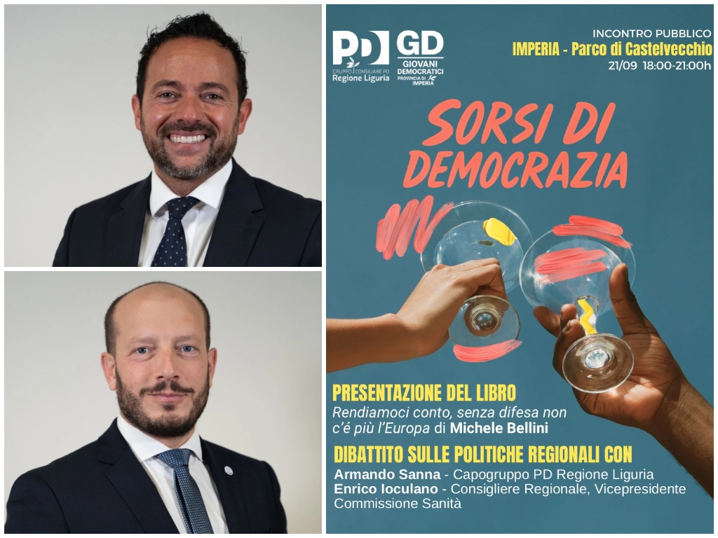Domenica 21 Settembre, il Gruppo consiliare del Pd Imperia, coadiuvato dal Gruppo consiliare del PD Regione Liguria e dai Giovani Democratici della Provincia di Imperia, organizza l’evento denominato “Sorsi di Democrazia”.