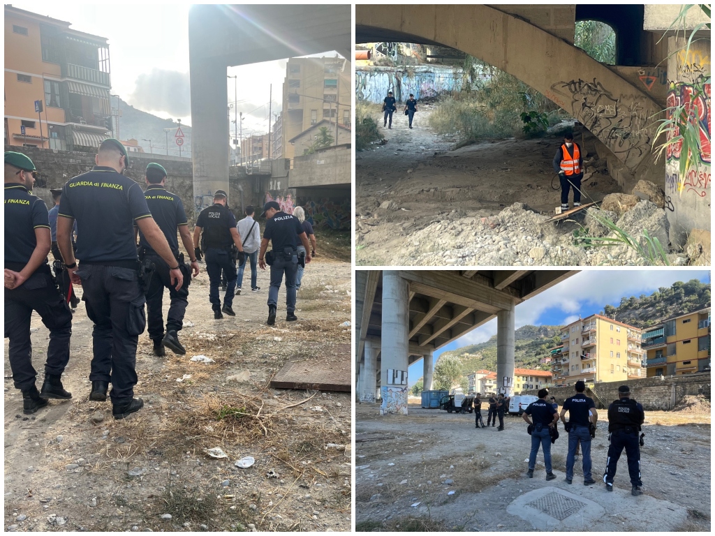 Nella mattinata di oggi 16 settembre, dando seguito alle operazioni di sgombero già avviate lo scorso 10 settembre, nell’ambito dei servizi di ordine pubblico, pianificati d’intesa tra Prefettura e Questura di Imperia, una squadra interforze d’intervento composta da personale della Polizia di Stato del Commissariato di Ventimiglia, dell’Arma dei Carabinieri, della Guardia di Finanza e della Polizia locale, con ausilio dei Vigili del Fuoco e della Protezione Civile del comune, coordinata dal Dirigente Vice Questore Dr Paolo Arena, ha dato esecuzione alle operazioni di bonifica e sgombero dei cunicoli (le cosiddette fornici) dell’arcata del ponte ferroviario che insiste sul fiume Roja.