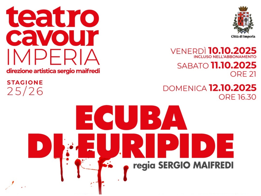 Venerdì 10 (incluso nell’abbonamento) e sabato 11 ottobre alle ore 21 e ancora domenica 12 ottobre alle 16,30, al Teatro Cavour di Imperia andrà in scena “Ecuba di Euripide”, con la regia di Sergio Maifredi, direttore artistico della stagione teatrale imperiese.