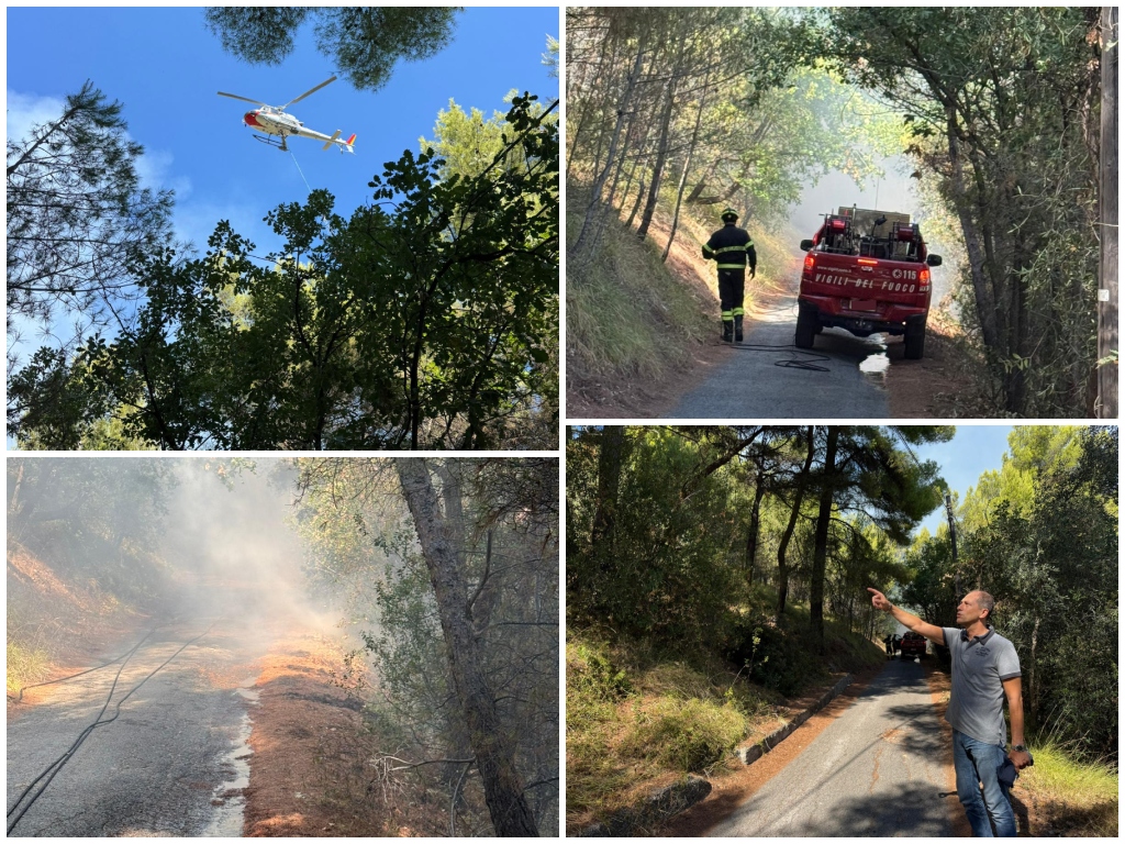 “Sono al lavoro squadre di Vigili del Fuoco, Protezione Civile e Polizia Locale, la prima a intervenire, chiudendo tempestivamente le strade di accesso alla zona per facilitare lo spegnimento delle fiamme e garantire la piena sicurezza dell’area interessata dall’incendio“, prosegue il sindaco, che aggiunge: ” Le operazioni sono ancora in corso e vedono l’impiego di due elicotteri dei Vigili del Fuoco. Si conferma che non è stato necessario evacuare alcuna abitazione e che l’origine dell’incendio non è ancora stata acclarata“.